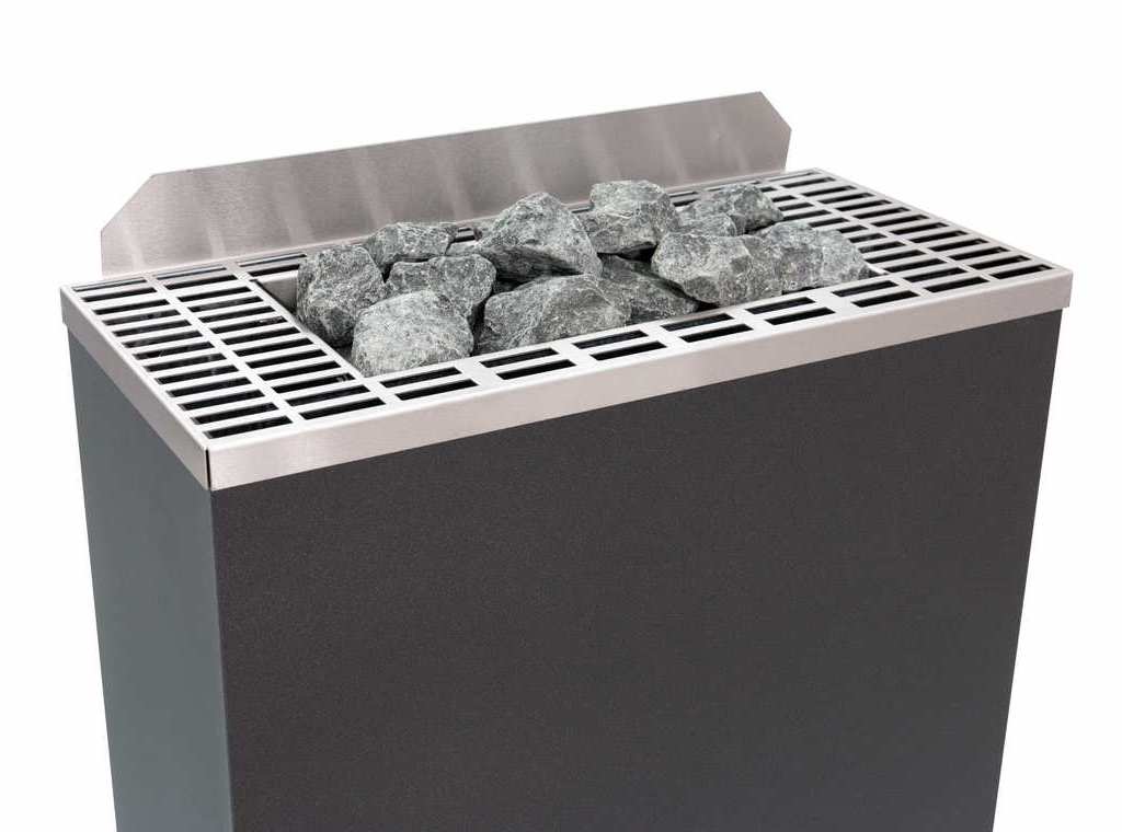 - Platzsparender Saunaofen, optimal zur Platzierung in schmalen Kabinen - nur 25 cm Bautiefe