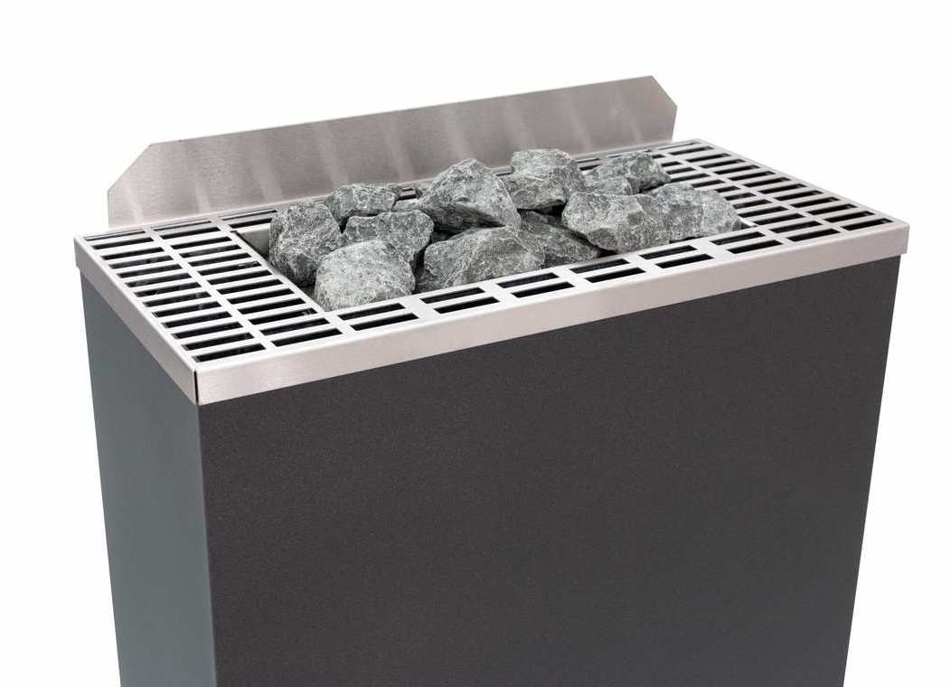 - Platzsparender Saunaofen, optimal zur Platzierung in schmalen Kabinen