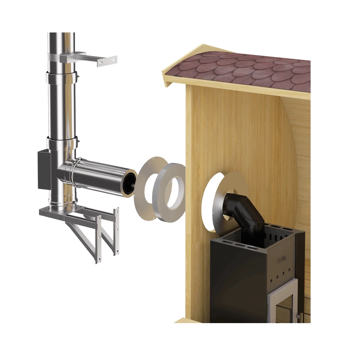 Produktinformationen "Fintec Edelstahl Außenkamin CHIMNEY (Montage an Rückwand) für holzbefeuerte Saunaöfen"