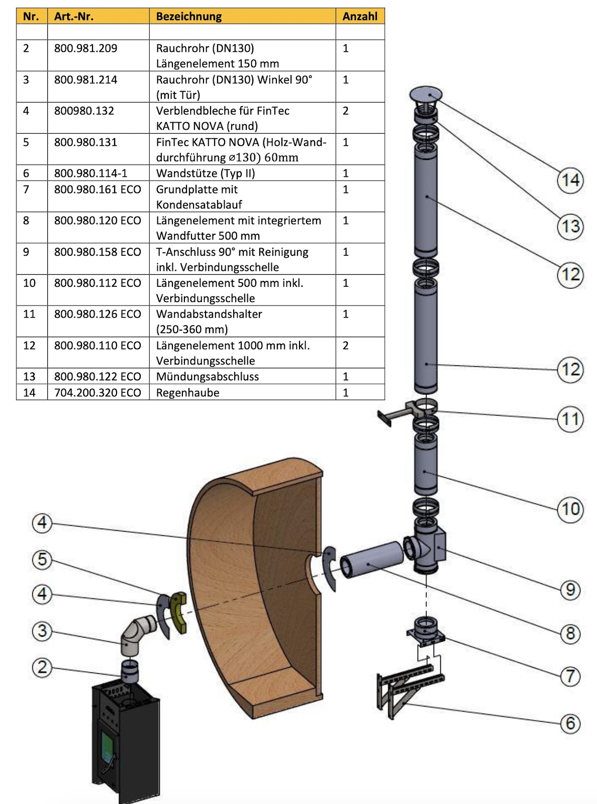- 1x FinTec KATTO NOVA (Holz-Wand-durchführung Ø 130) 60mm