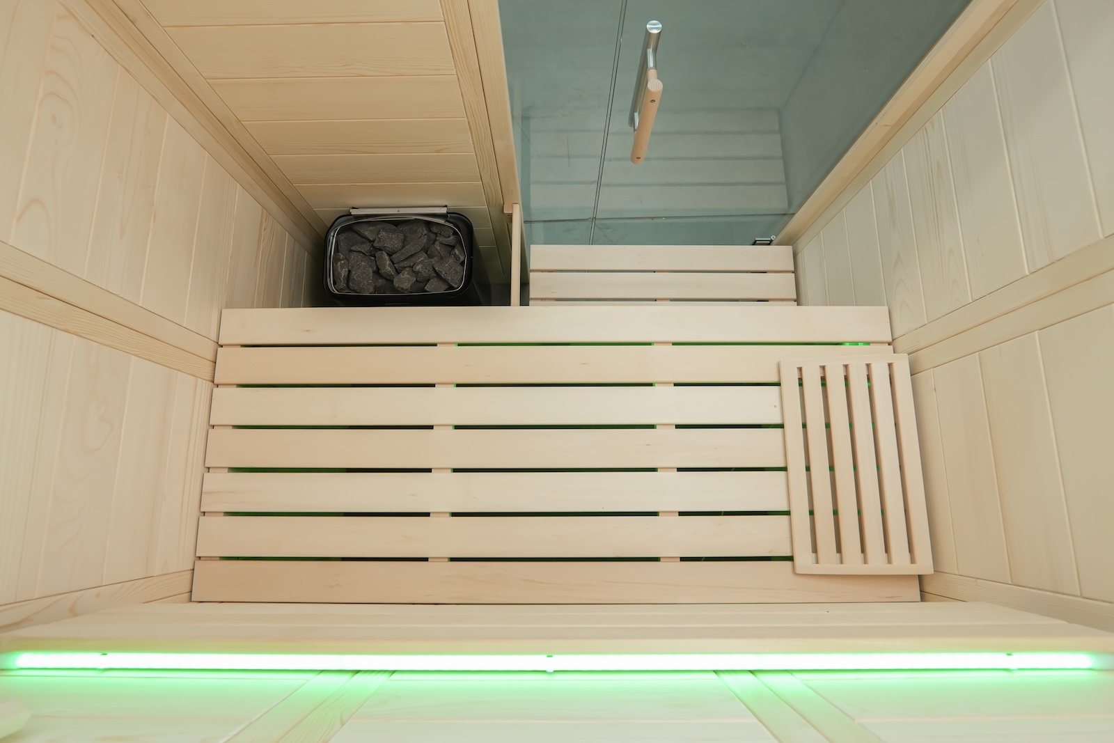 (Saunaofen und LED-Beleuchtung nicht im Lieferumfang enthalten - Optional erhältlich!)