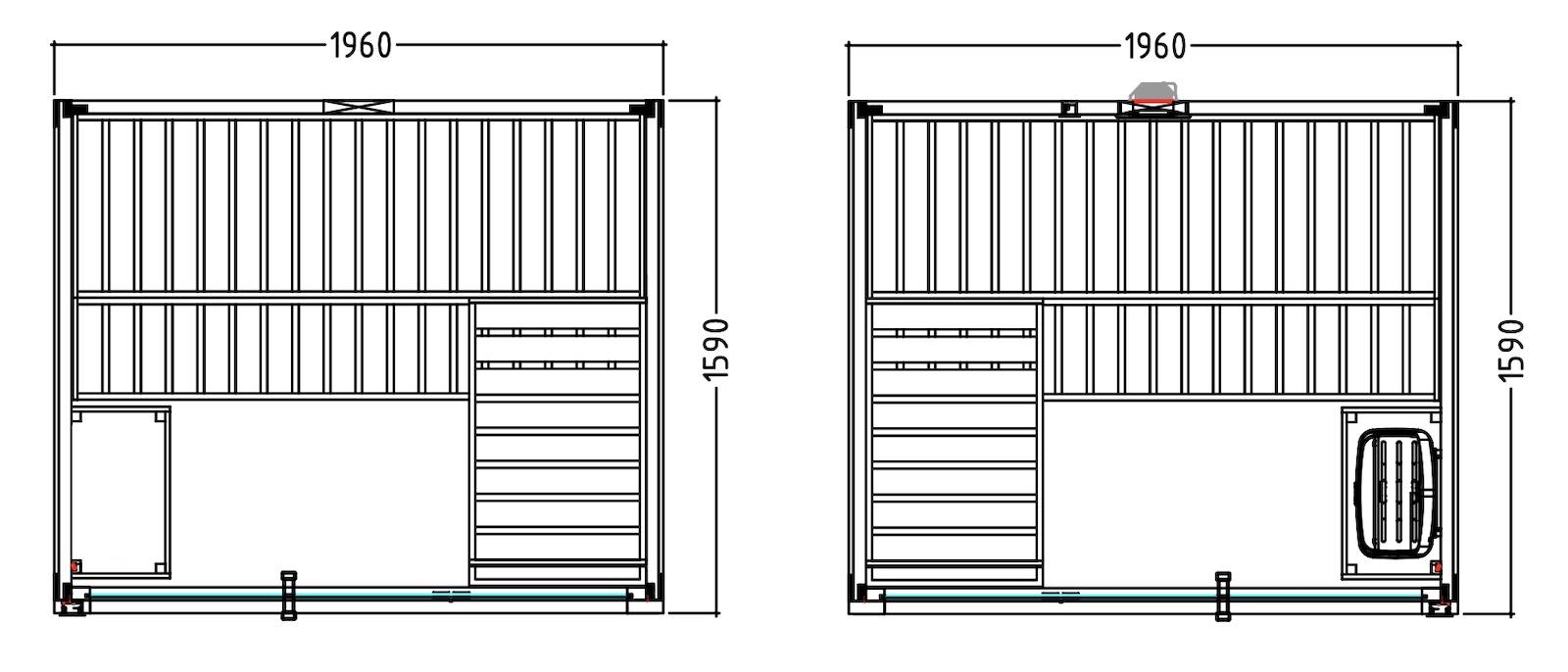 - Maße: 1960 x 1590 x 2040 mm (B / T / H)