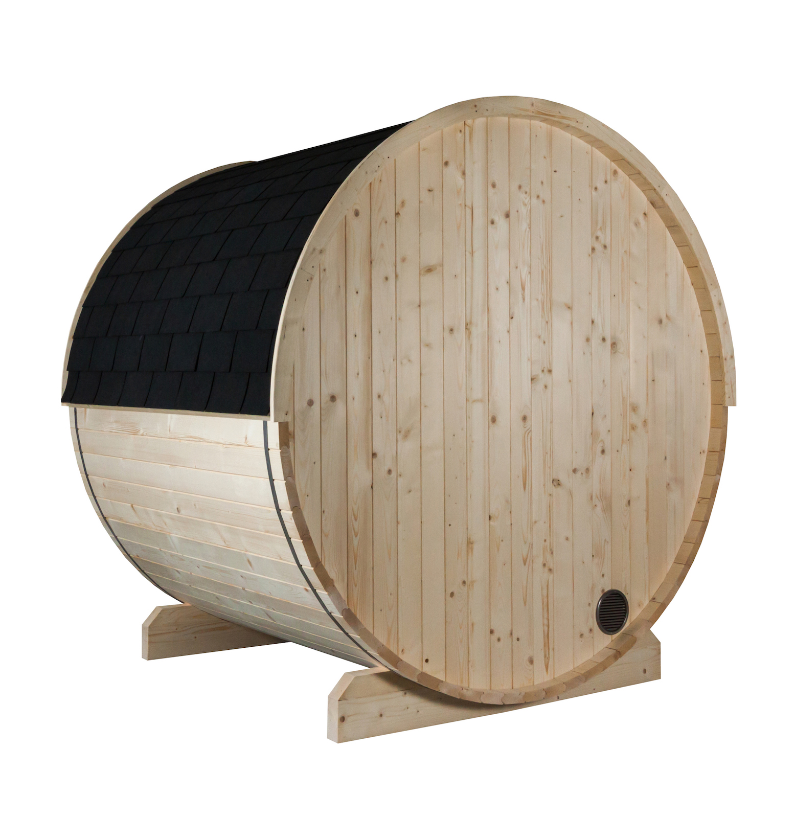 - 1 x Harvia Kuusi 180 Fasssauna aus Fichte Gartensauna mit Dacheindeckung Ø 220 x 180 cm