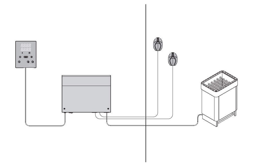 Alle Xenio Steuerungen verfügen über eine Leistungseinheit, die an einem trockenen Ort außerhalb der Sauna installiert werden sollte.
