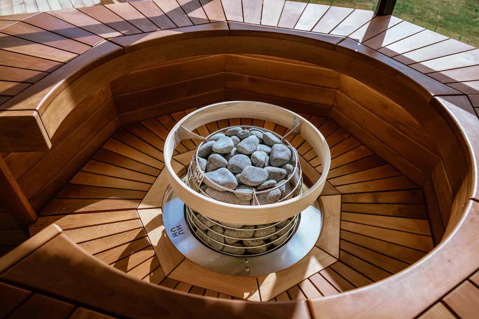 - Wenn man den HIVE Saunaofen teilweise im Inneren der Saunabank montieren möchte
