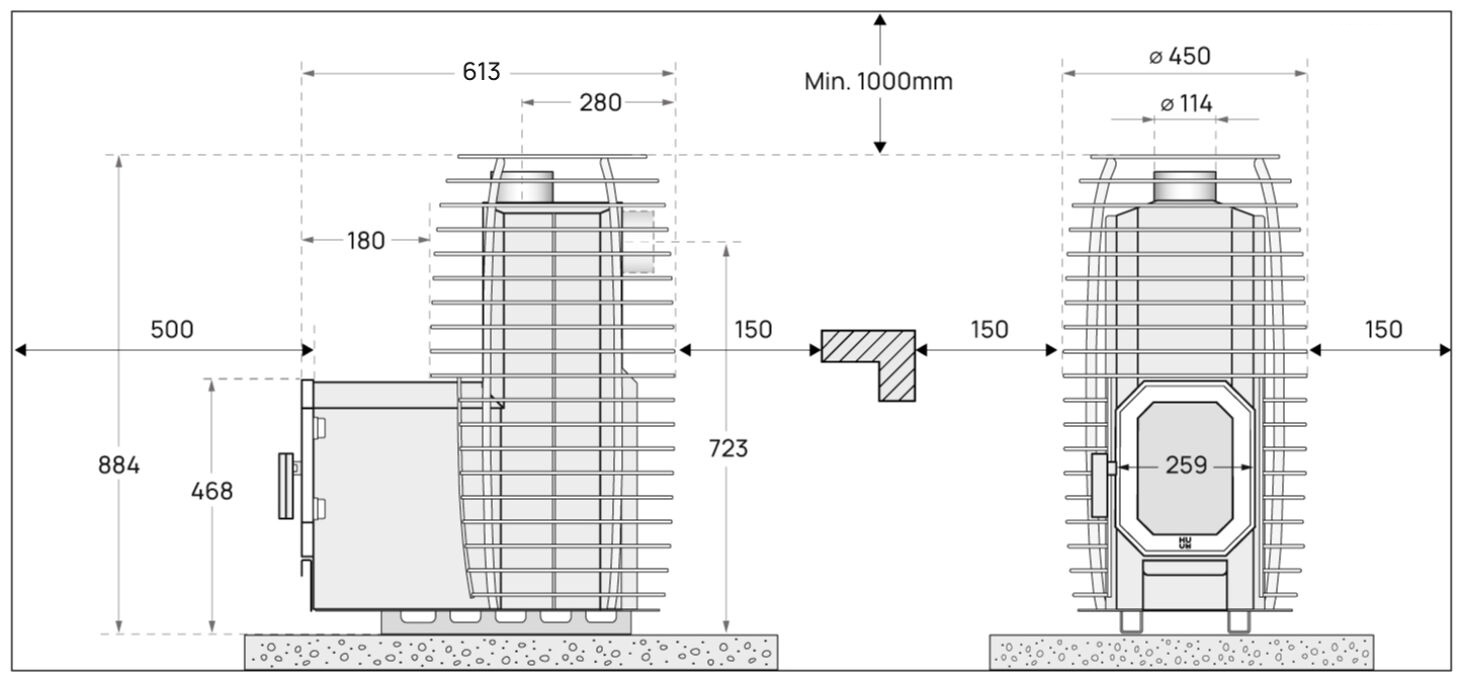 - Lieferung erfolgt ohne Saunasteine und ohne Schornsteinrohre (separat erhältlich) -