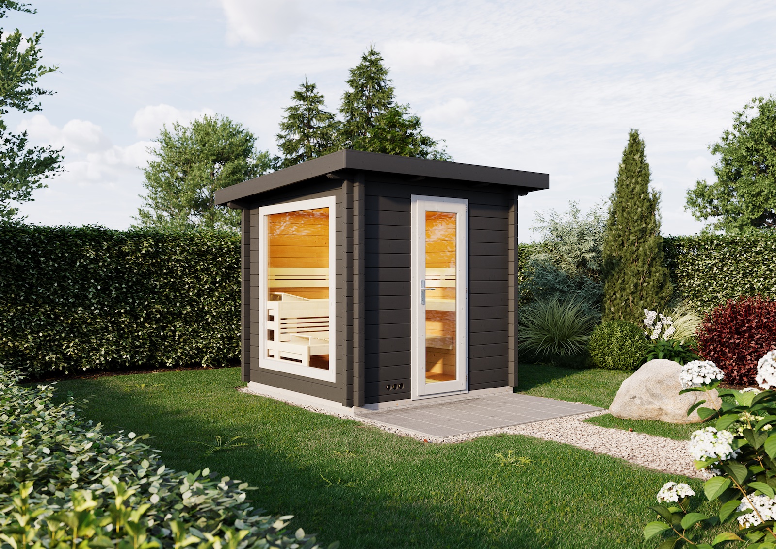 - Die Gartensauna Terra wird als Bausatz mit ausführlicher Anleitung angeliefert