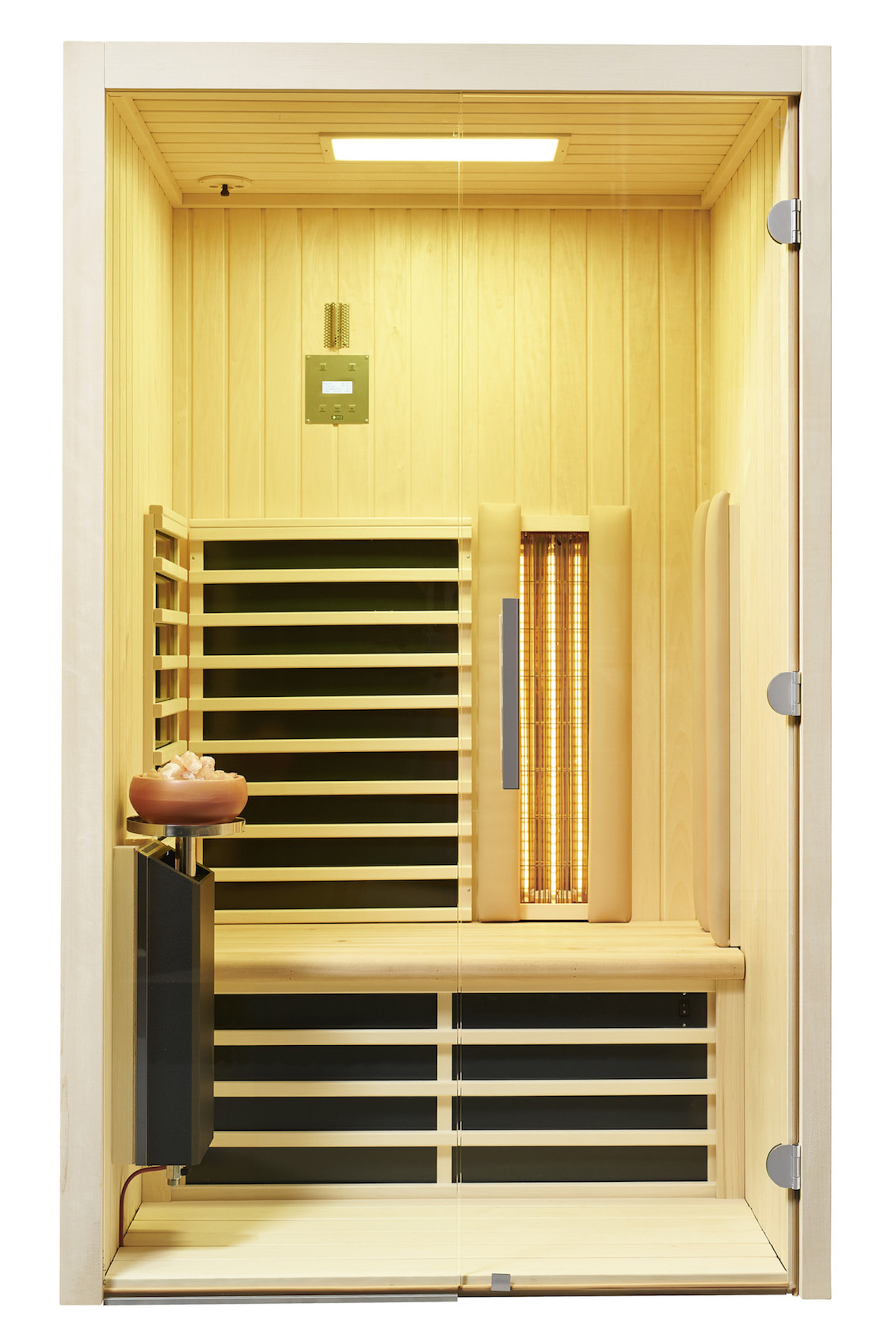 Infraworld Infrarotkabine TrioSol Glas 125 VG Tanne Flächenheizung/ABC-Strahler/Salzverdampfer 125x112 cm
