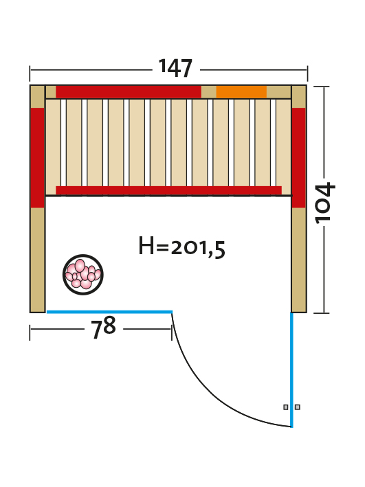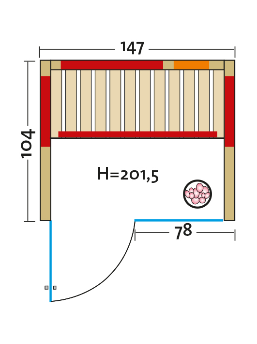 - Abmessung außen (BxTxH): ca. 147x104x201,5 cm