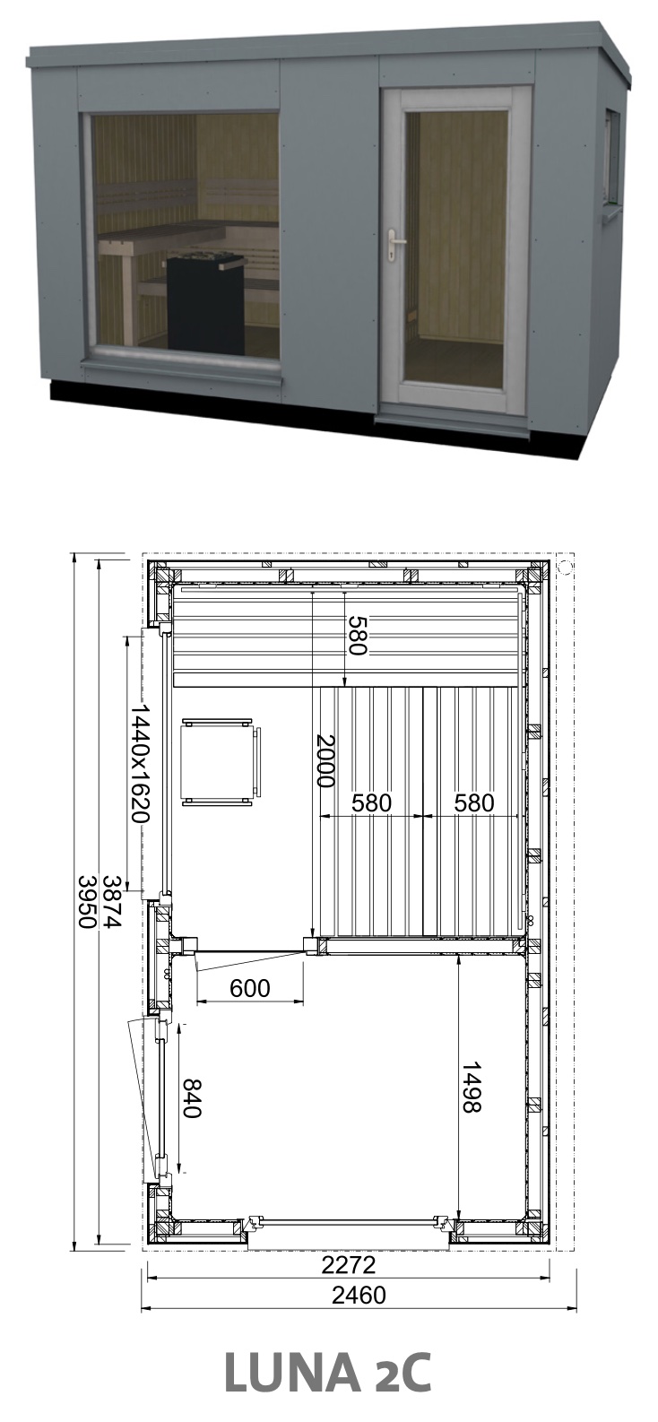- Gartensauna in Elementbauweise mit witterungsbeständigen HPL-Platten