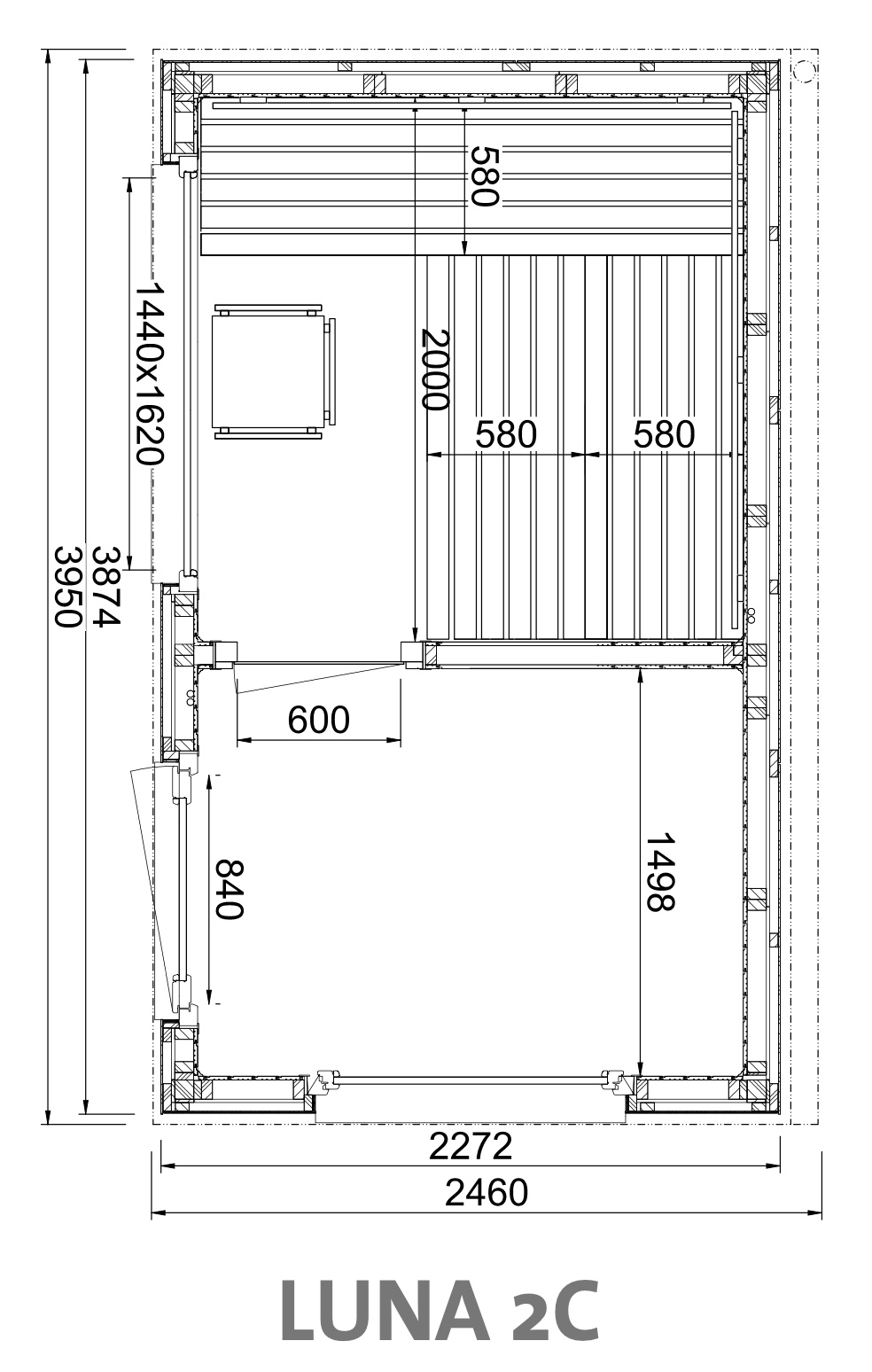 - Innenverkleidung aus 15 mm Profilbretter in nord. Fichte, vertikal verarbeitet