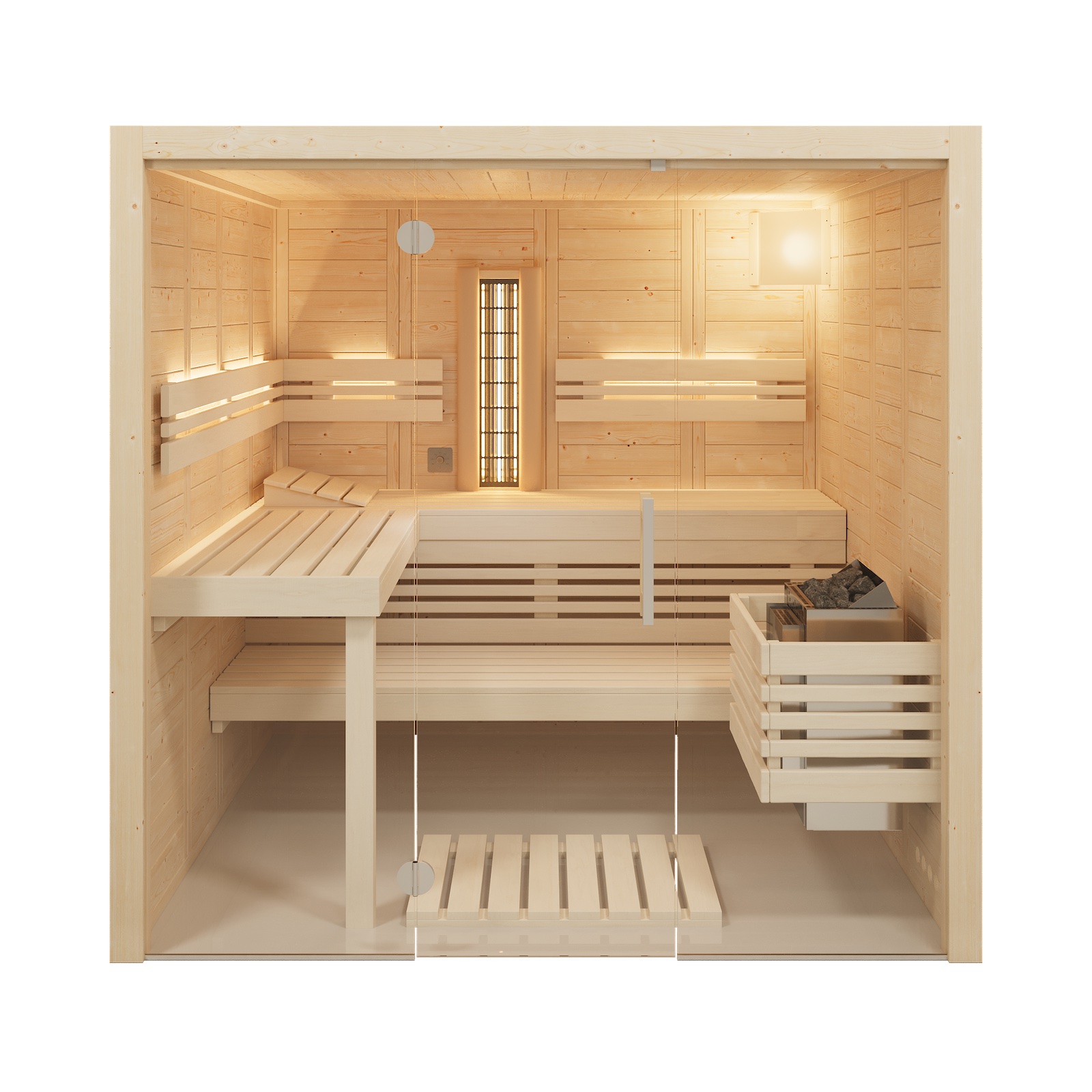 - 1 x Infraworld Solido Glas Complete Massivholzsauna aus nordischer Fichte 210x167x202cm