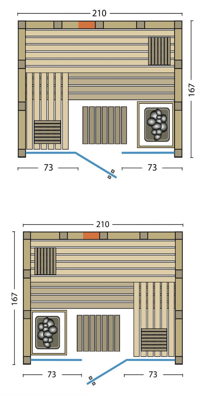 Hinweis: Saunaofen, Saunaofen-Steuerung und LED-Rückenlehnenbeleuchtung sind nicht im Lieferumfang enthalten! (Optional erhältlich)