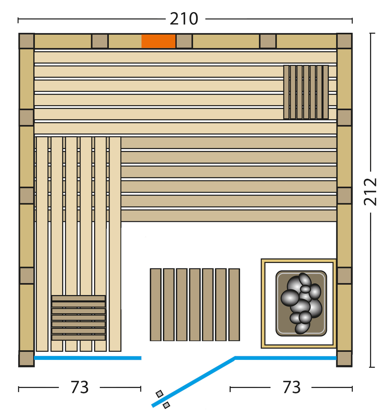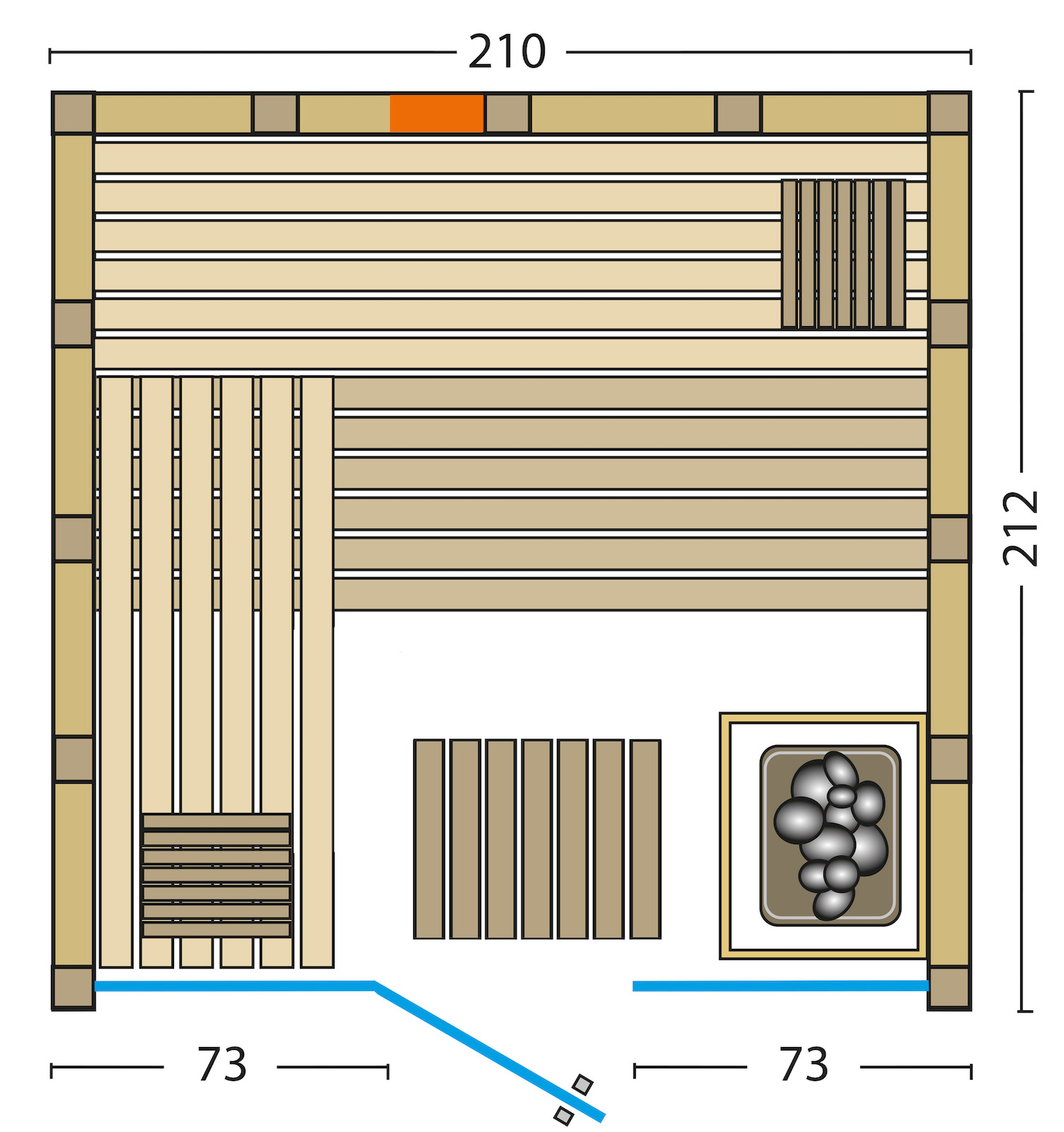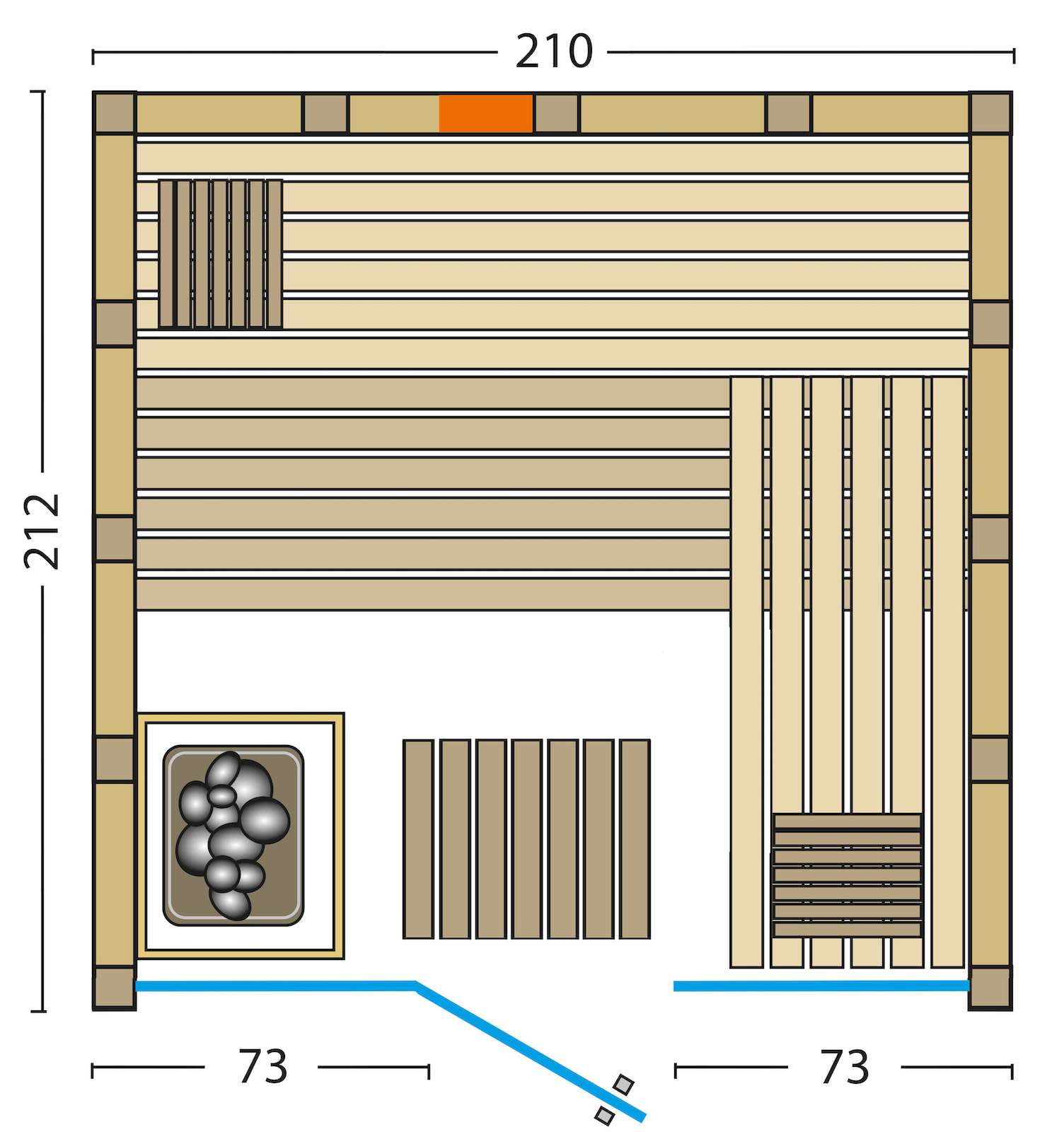 Hinweis: Saunaofen, Saunaofen-Steuerung und LED-Rückenlehnenbeleuchtung sind nicht im Lieferumfang enthalten! (Optional erhältlich)