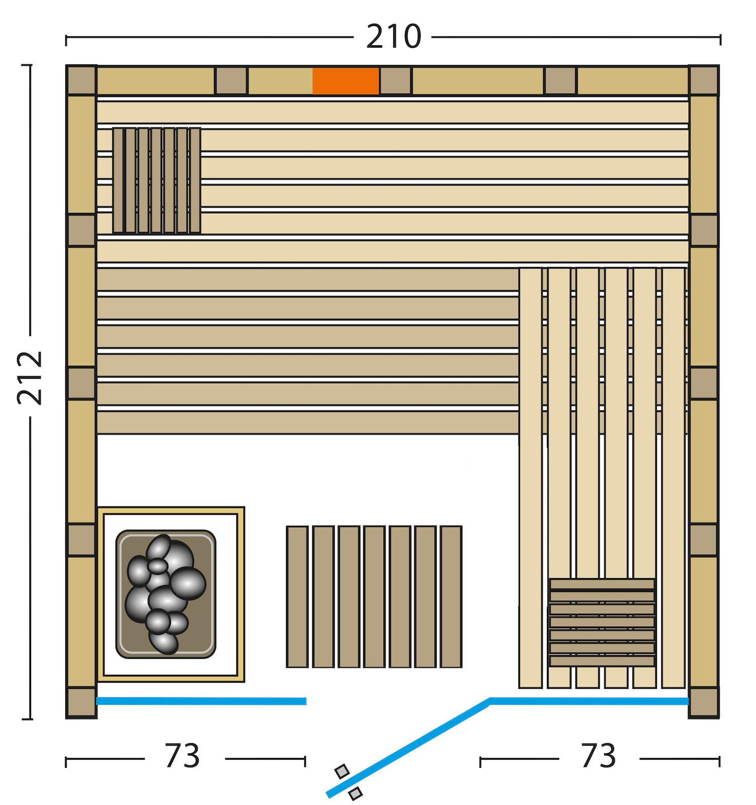 - Massivholzsauna aus 40 mm nordische Fichte in flächenbündiger Kassettenbauweise