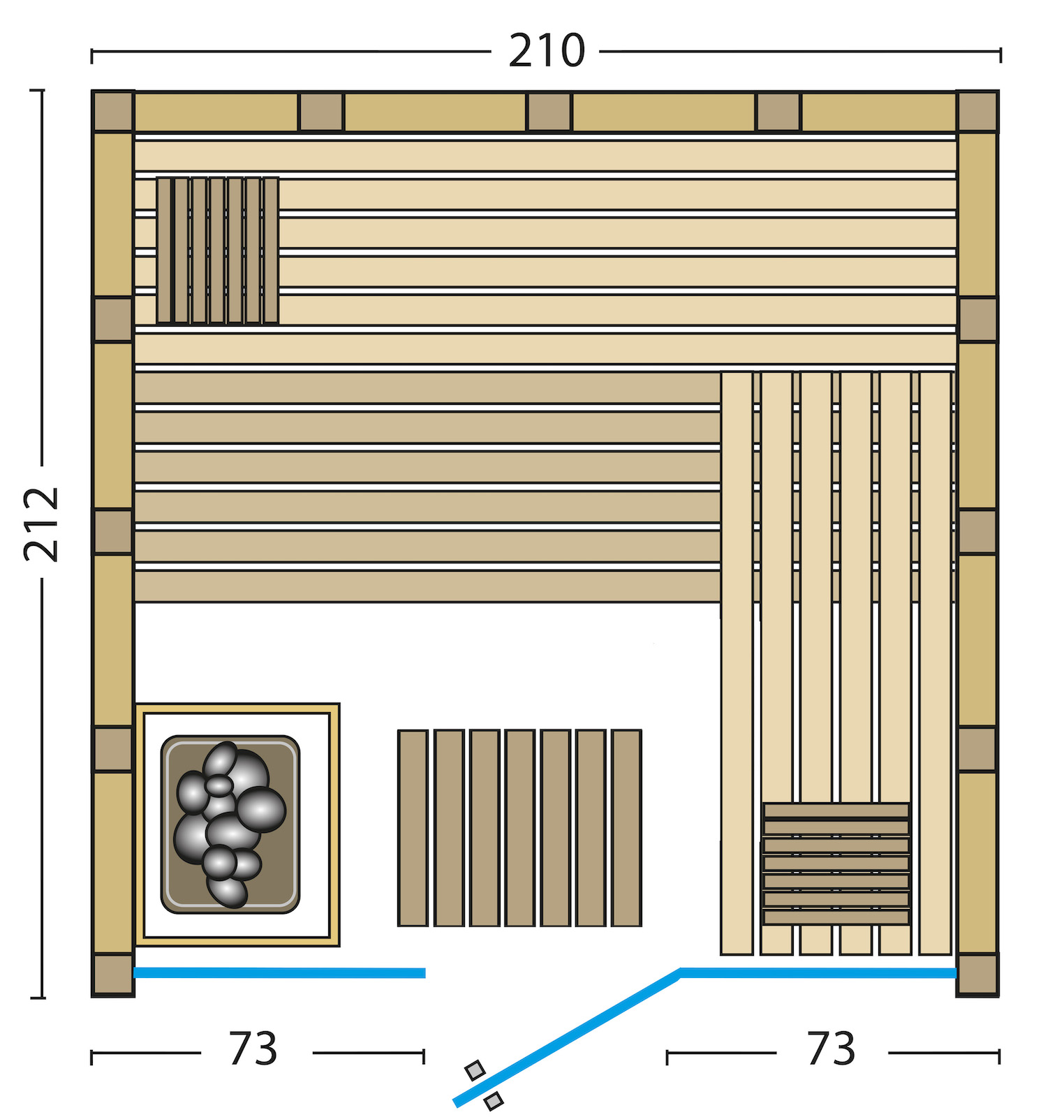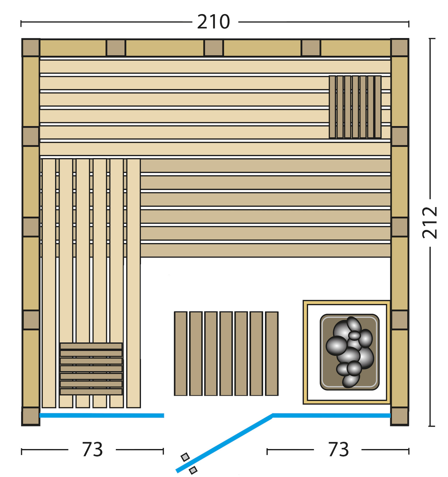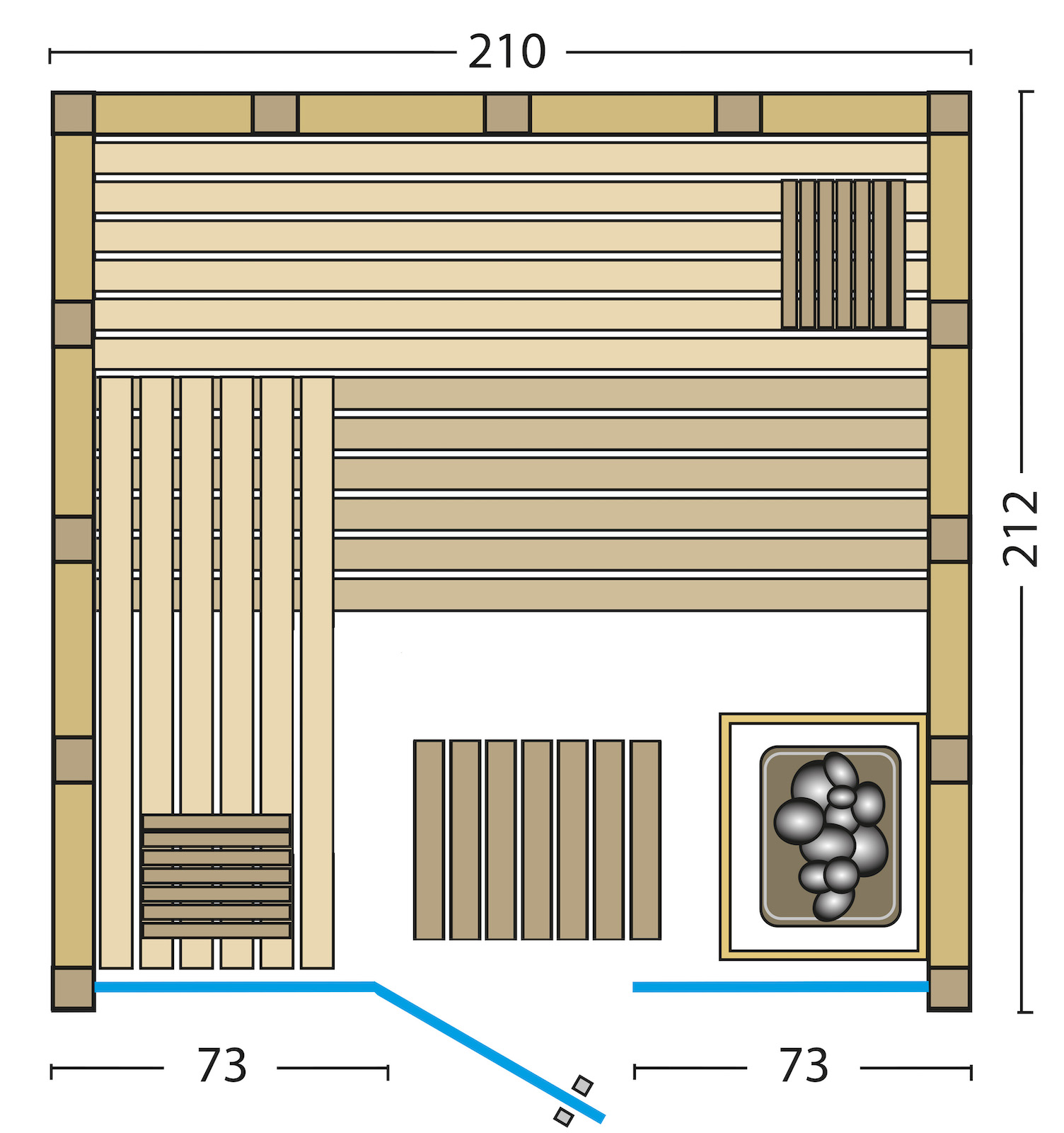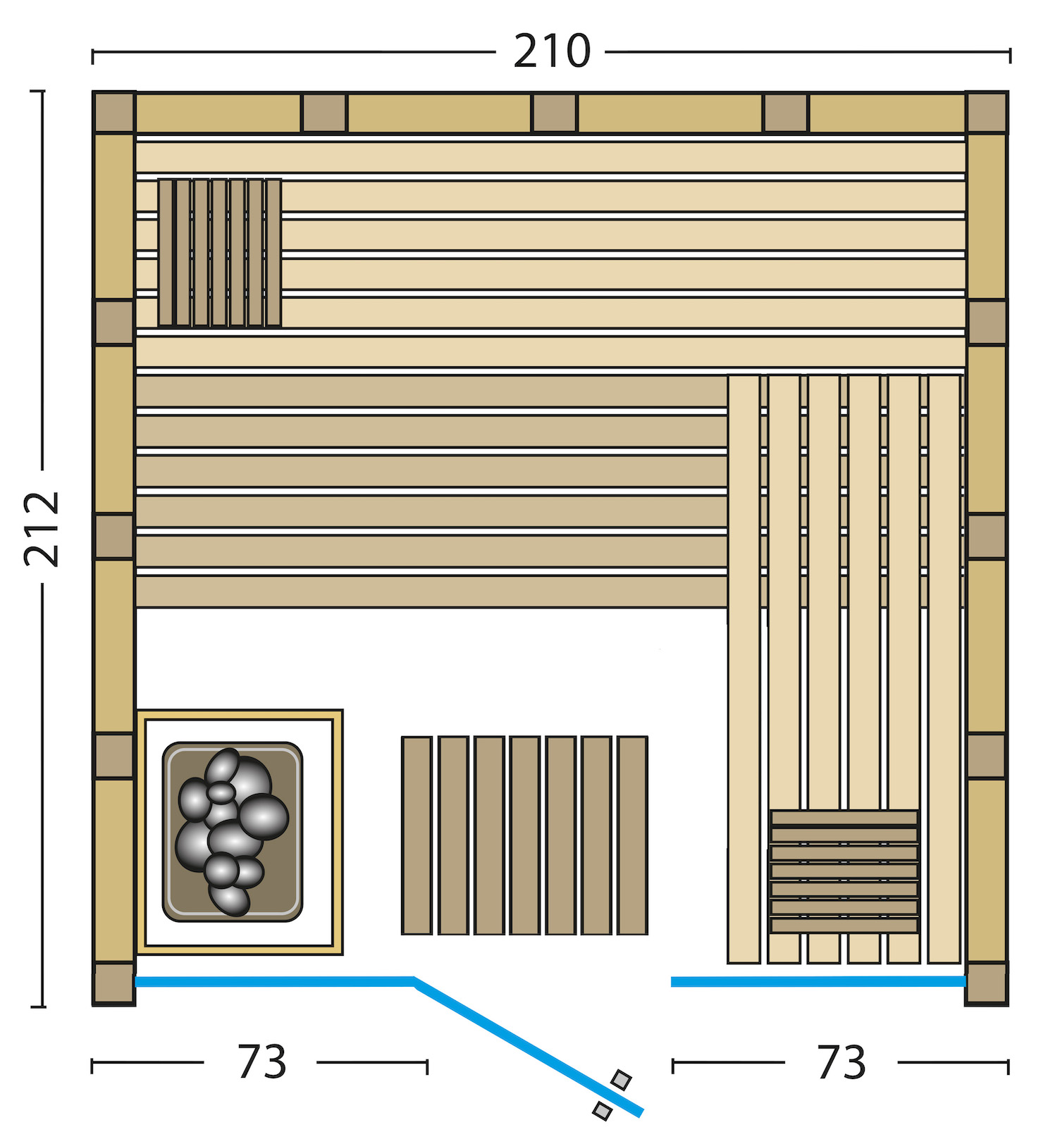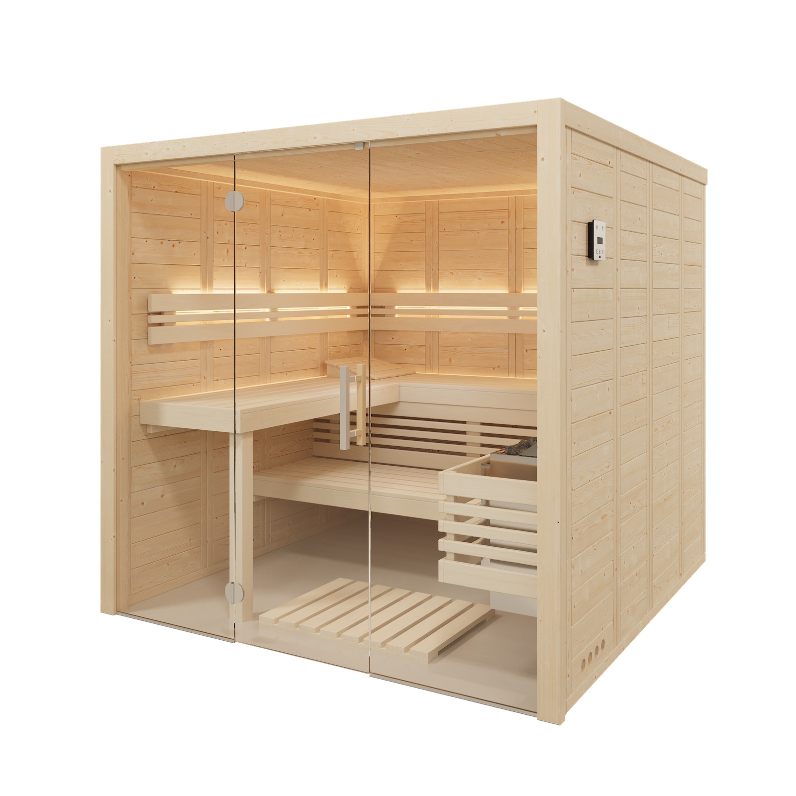 - Massivholzsauna aus 40 mm nordische Fichte in flächenbündiger Kassettenbauweise
