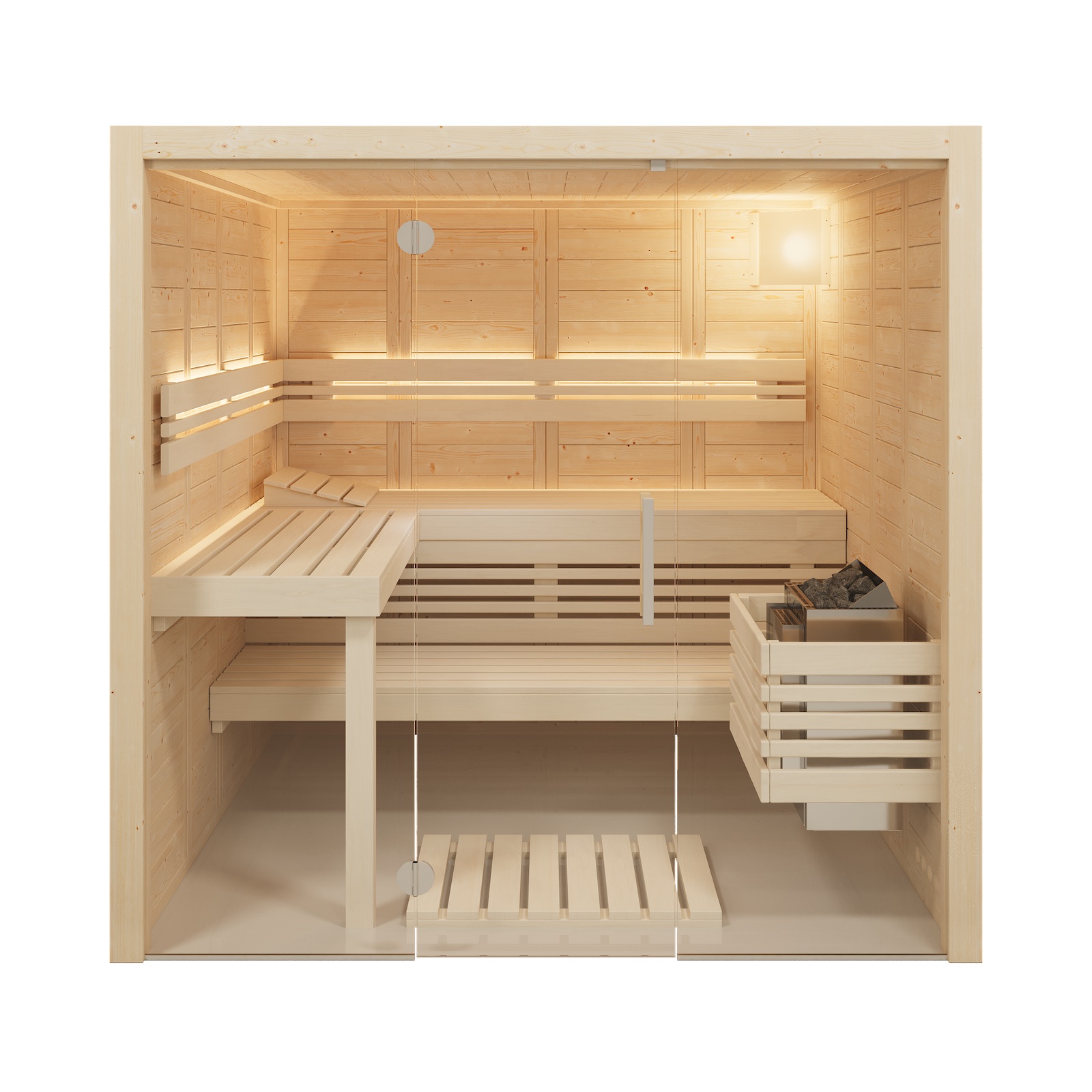 - 1 x Infraworld Solido Glas Massivholzsauna aus nordischer Fichte 210x212x202cm