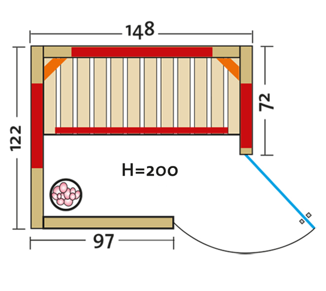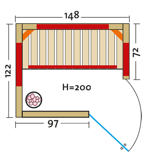 - Abmessung außen (BxTxH): ca. 148x121,5x195 cm