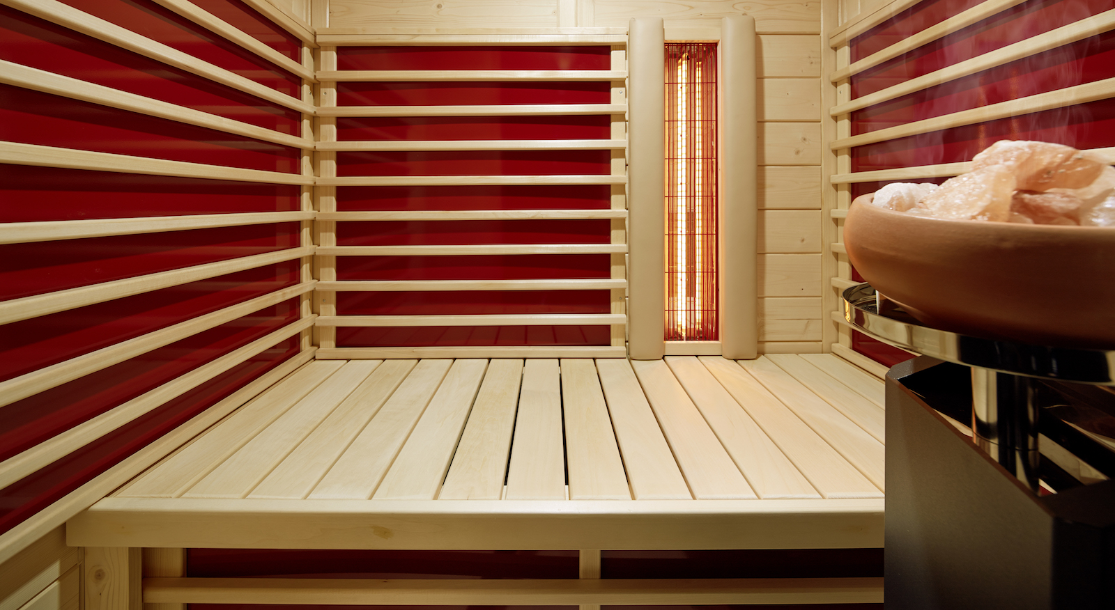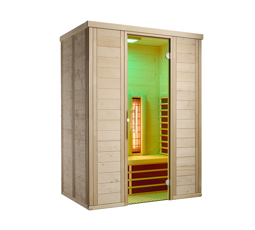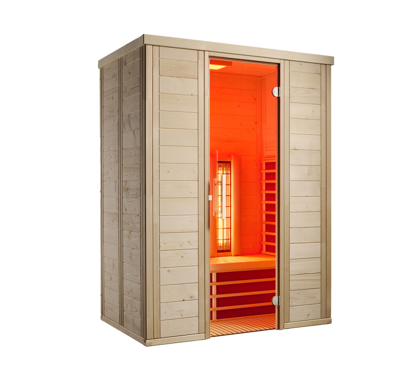 Die TrioSol-Infrarotkabine vereint drei verschiedene Elemente und sorgt für ein absolutes Wohlfühlambiente. Die Flächenheizung spendet behagliche Wärme. Der VITALlight-Strahler bietet ein ähnliches ABC-Infrarotspektrum wie die Sonne und verwöhnt Haut, Blutgefäße und Muskulatur mit einer intensiven, punktuellen Bestrahlung. Für salzhaltigen Wasserdampf in der Luft sorgt die exklusive Sole-Therme. Mit dem ausgeklügelten Steuersystem können Sie alle Module stufenlos und individuell dosieren.