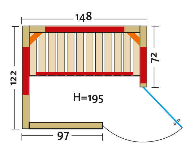 - Abmessung außen (LxBxH): ca. 148x121,5x195 cm