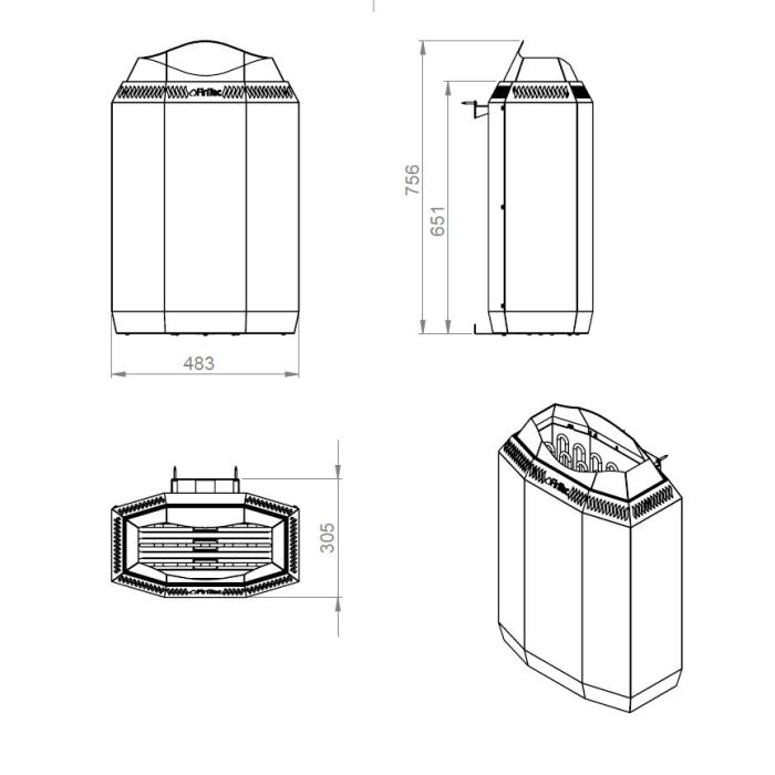 - Hohe Steinkapazität von ca. 30 kg für reichhaltige Aufgüsse ohne Temperaturverlust