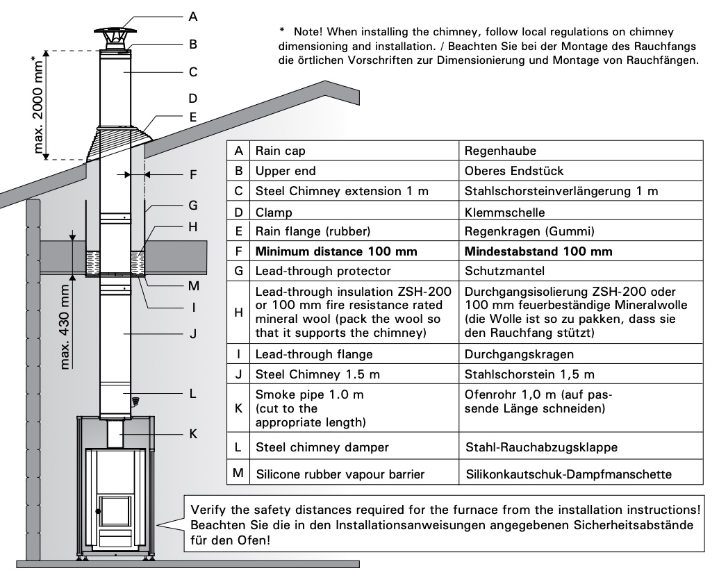 - Für den Einsatz mit Holzöfen in freistehenden Saunagebäuden entwickelt