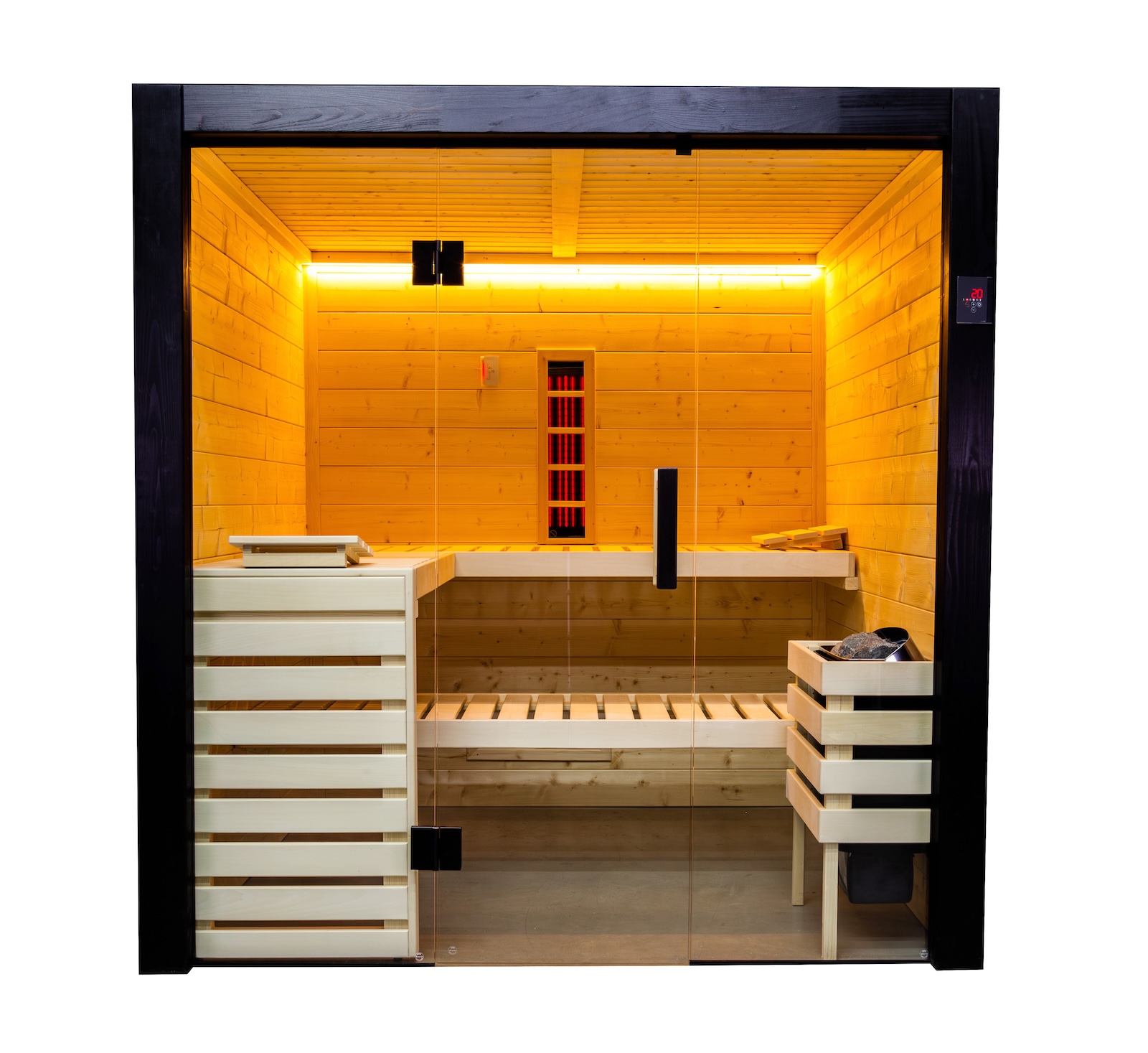 - Sauna-Komplettset mit 9 kW Saunaofen, Saunasteine, Fühler, Saunasteuerung und Infrarotstrahler