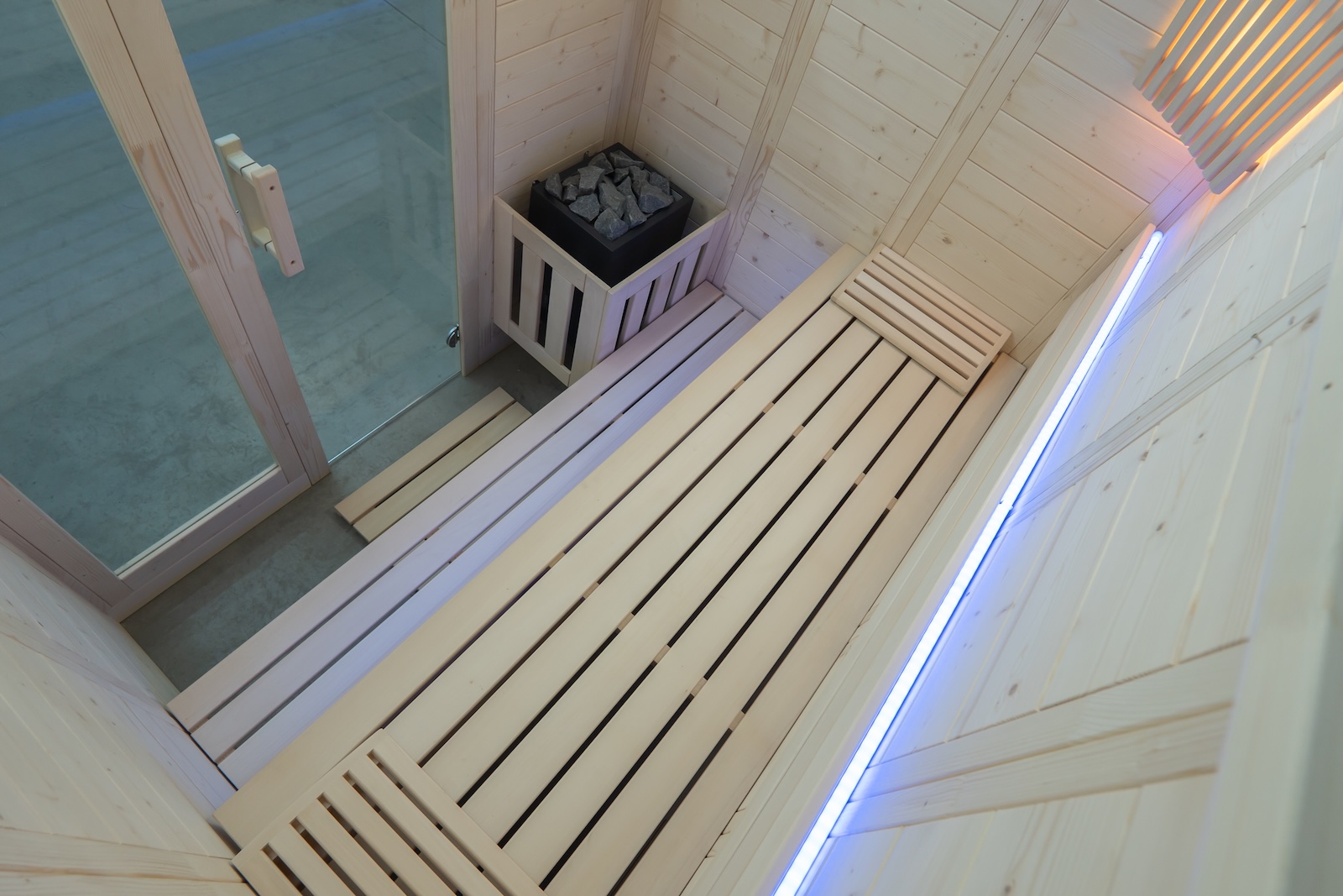 (Saunaofen und LED-Beleuchtung nicht im Lieferumfang enthalten - Optional erhältlich!)