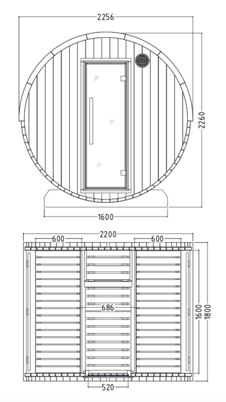 - 1 x Harvia Kuusi 180 View Fasssauna aus Fichte Gartensauna Ø 220 x 180 cm
