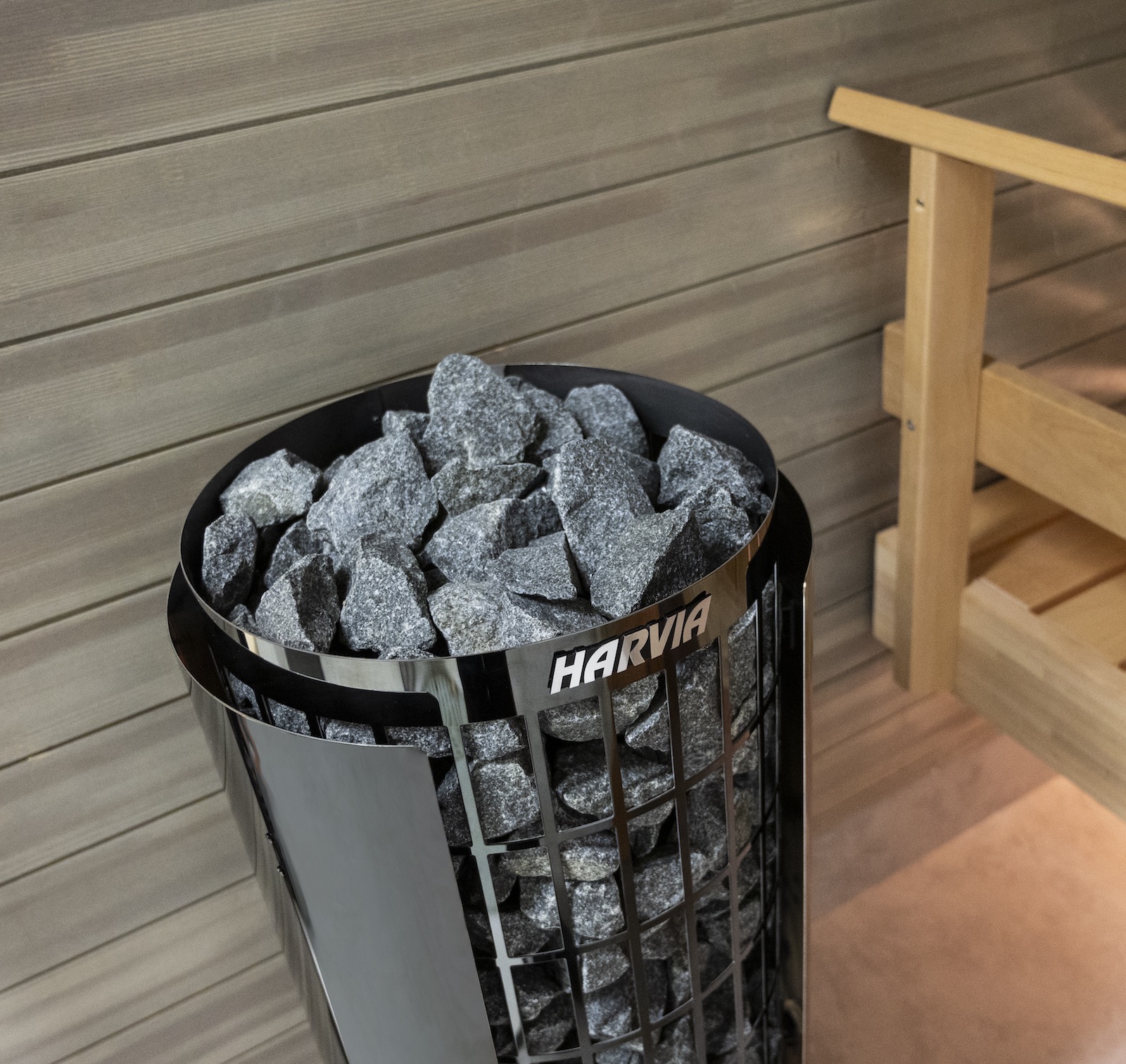 Die Schutzabtrennung für den Saunaofen Cilindro von Harvia ermöglicht eine sichere Installation des Ofens in Wand- oder Banknähe. Darüber hinaus wird beispielsweise die Glaswand und die Holzoberflächen vor Spritzwasser geschützt – was die Pflege der Sauna erleichtert.