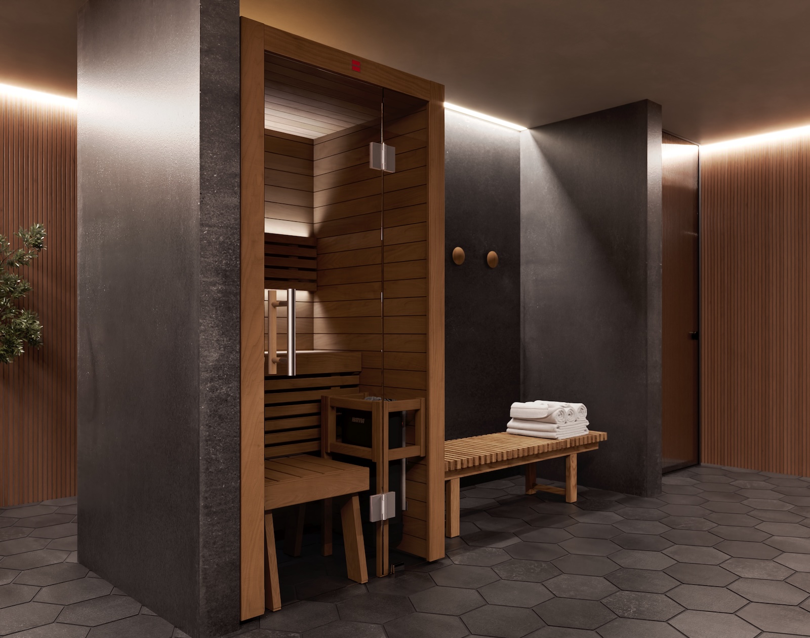 (Saunaofen und Saunasteuerung nicht im Lieferumfang enthalten! Optional erhältlich)