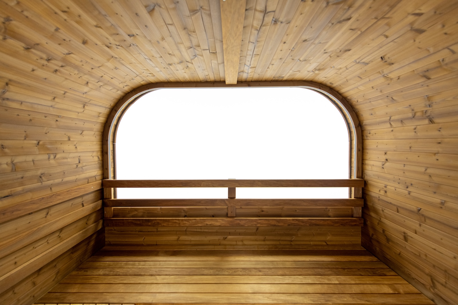 Die aus Massivholzdauben gefertigte Würfelsauna hält dank ihrer strukturellen Integrität selbst den rauesten Außenumgebungen stand.