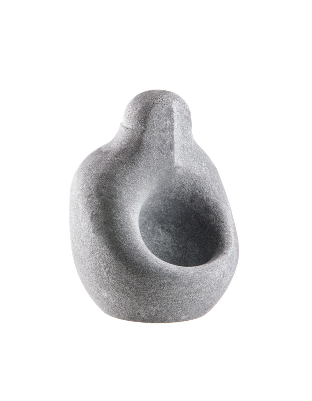 - Die Dufttasse aus Speckstein wird in die Mitte der Saunasteine plaziert