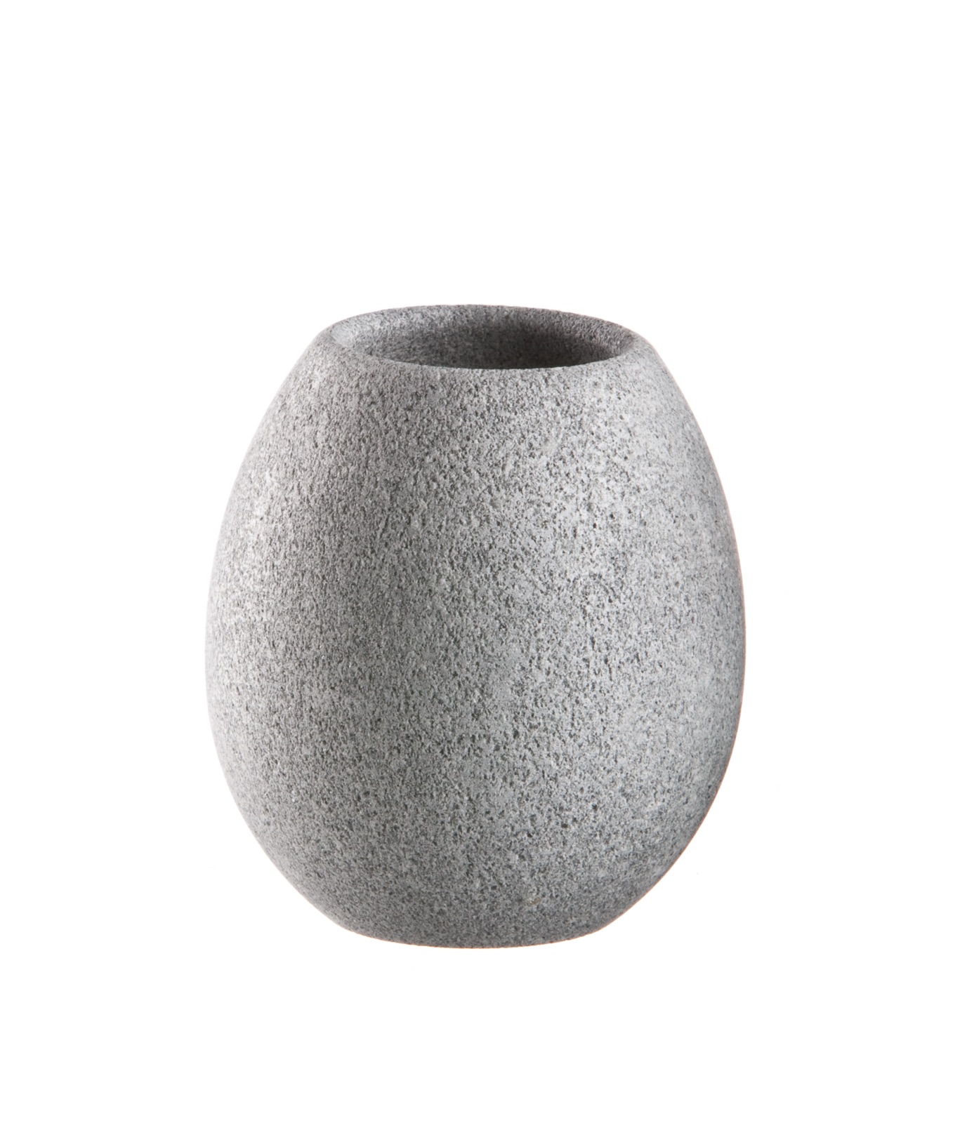 - Die Dufttasse aus Speckstein wird in die Mitte der Saunasteine plaziert