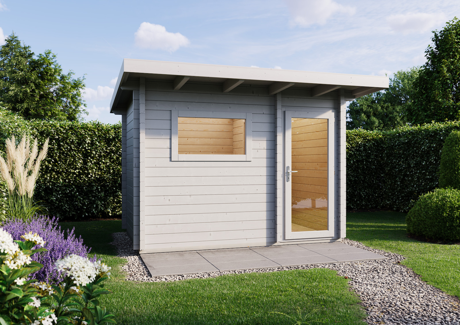 - Die Gartensauna Terra wird als Bausatz mit ausführlicher Anleitung angeliefert