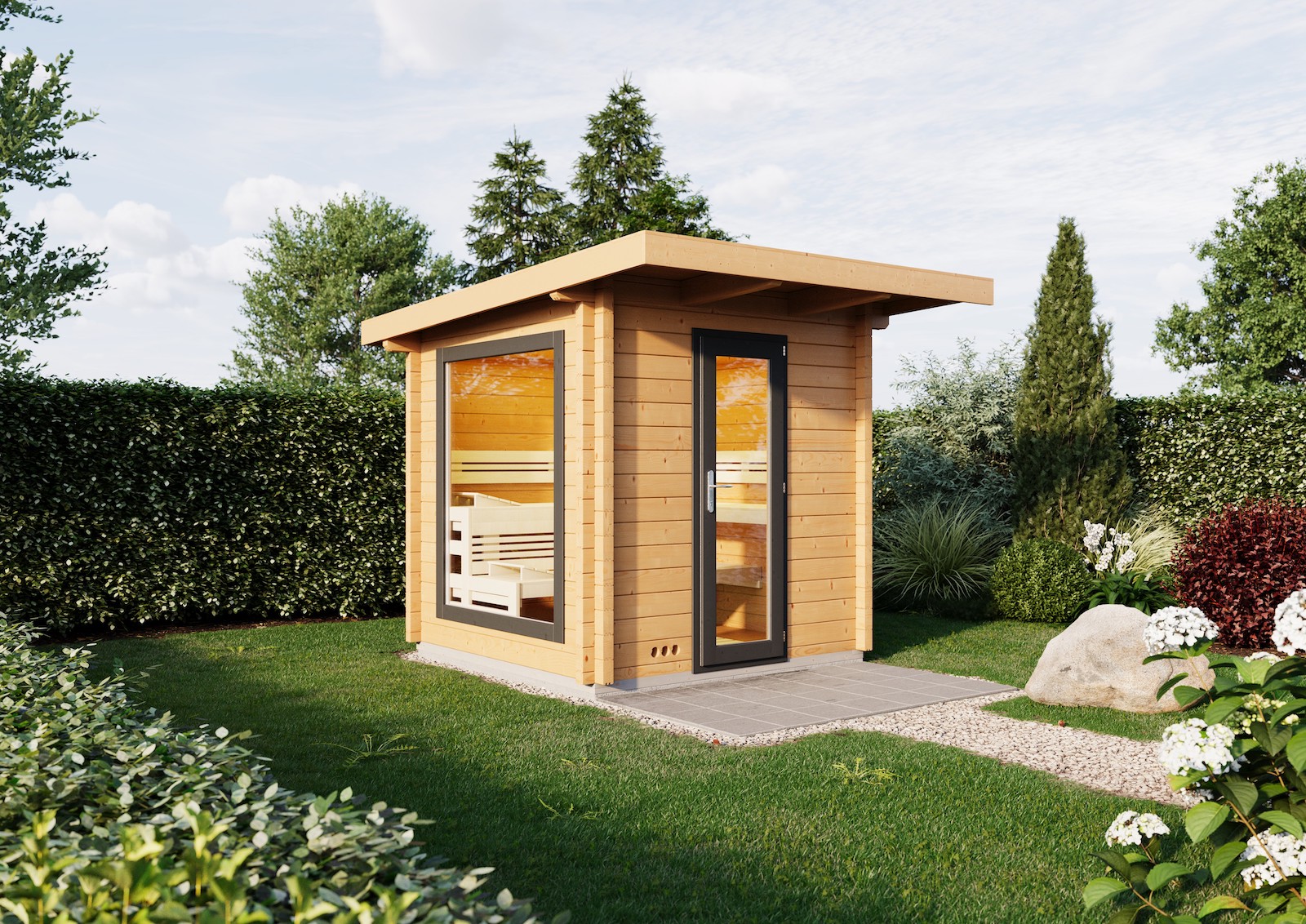- Die Gartensauna Terra wird als Bausatz mit ausführlicher Anleitung angeliefert