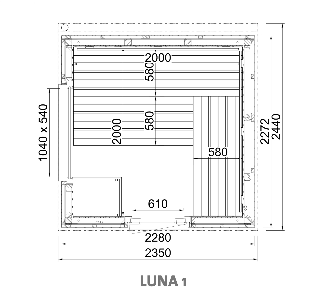 - Innenverkleidung aus 15 mm Profilbretter in nord. Fichte, vertikal verarbeitet