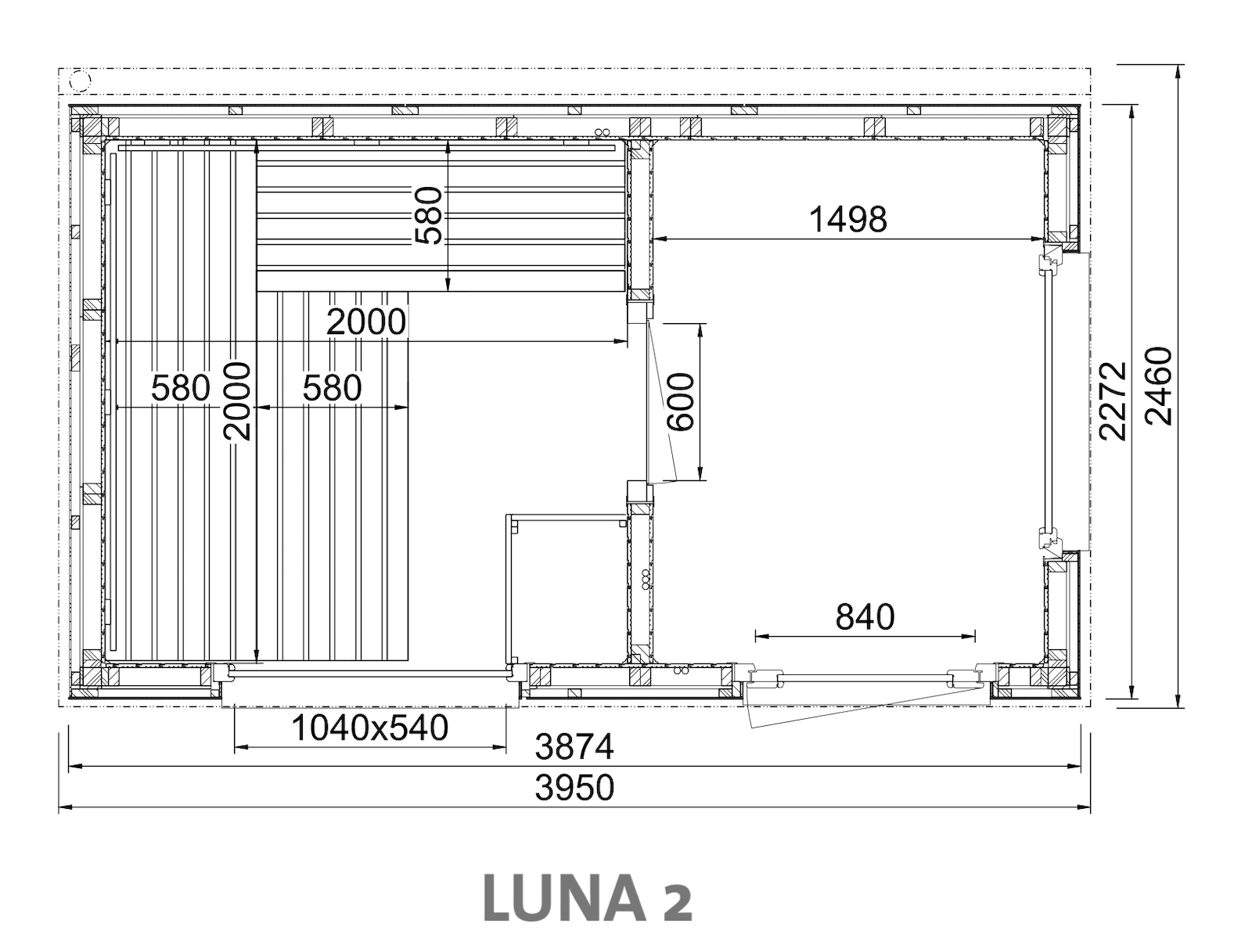 - Innenverkleidung aus 15 mm Profilbretter in nord. Fichte, vertikal verarbeitet