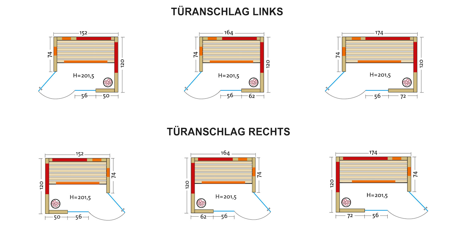 - Tür: ca. 62,5 x 192 cm (B x H)