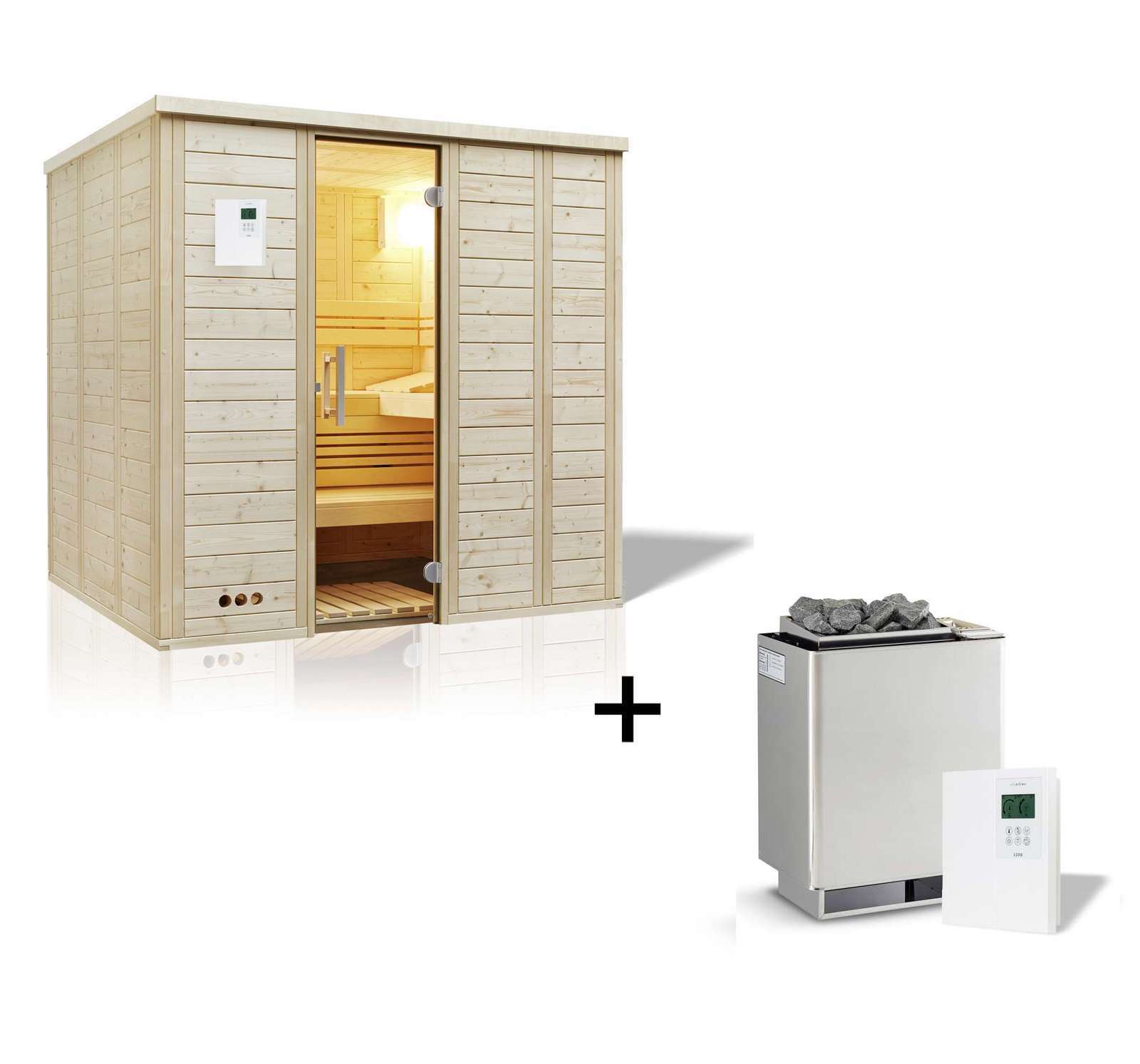 - Massivholzsauna aus 40 mm nordischer Fichte in Wand und Decke