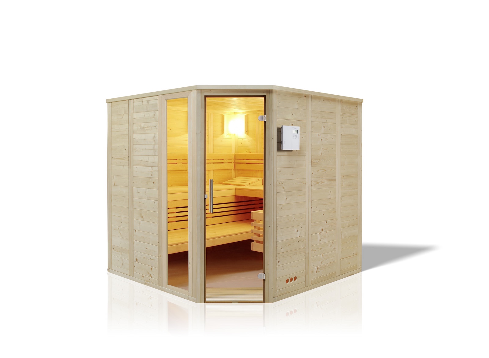 - Massivholzsauna aus 40 mm nordischer Fichte in Wand und Decke