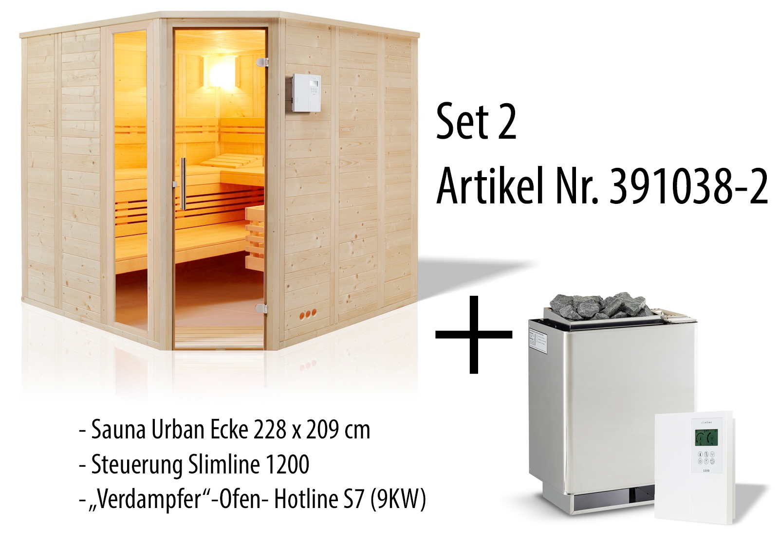 - Massivholzsauna aus 40 mm nordischer Fichte in Wand und Decke