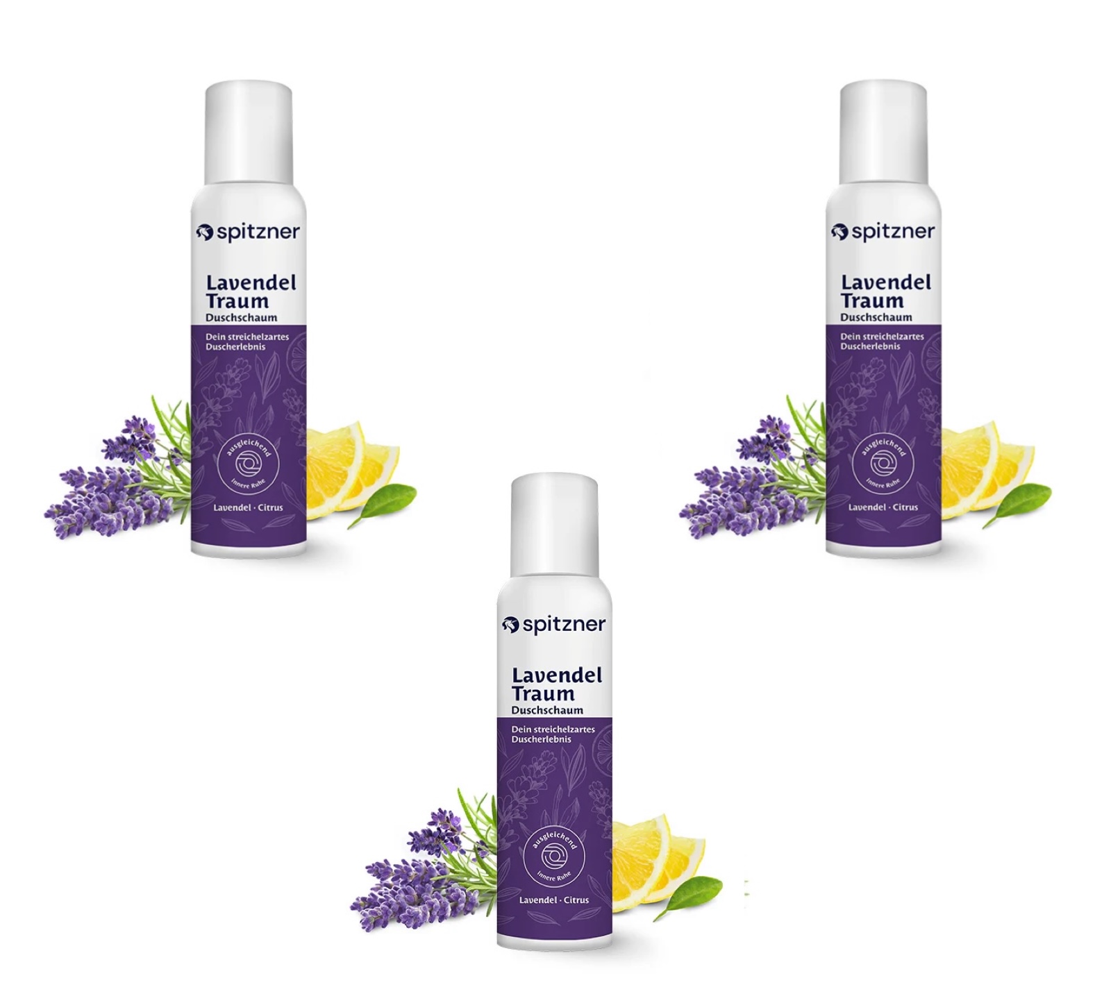 Spitzner Duschschaum Set Lavendel 3x 150 ml Ausgleichende Wellness-Dusche sanft hautverträglich und 100% vegan 3er Set