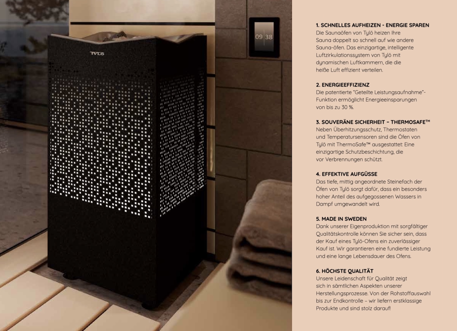 - 1x Tylö Crown Elite 8 Premium Saunaofen 8 kW finnischer Stand-Saunaofen