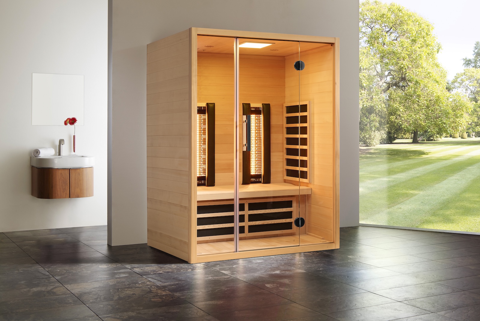 Mit ihrer hochwertigen Ausstattung und Verarbeitung kann die Moonlight Infrarotkabine einen wichtigen Beitrag zur Steigerung Ihrer Lebensqualität leisten. Edles Design aus kanadischer Hemlock verleiht dieser Kabine das moderne Aussehen.