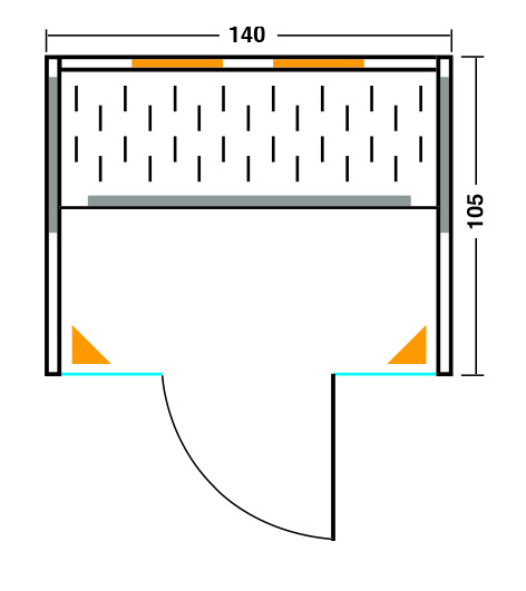 - Glastür: Sicherheitsglas 8 mm, klar